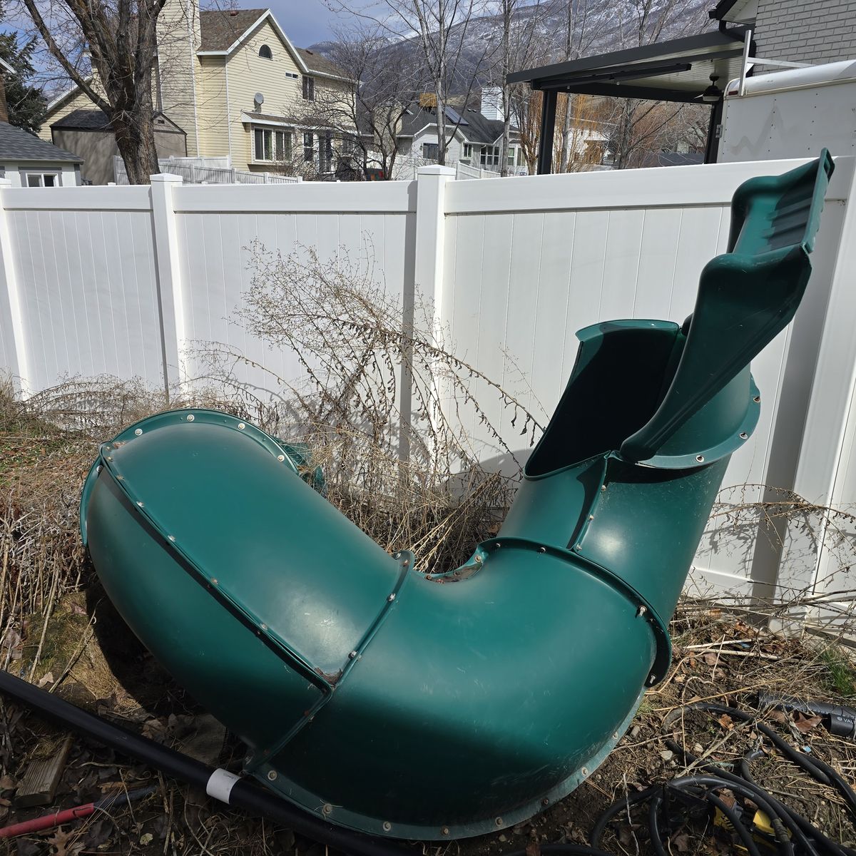 Corkscrew play slide.