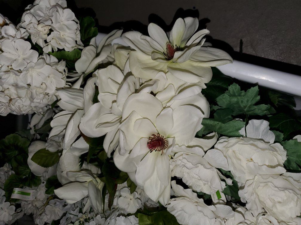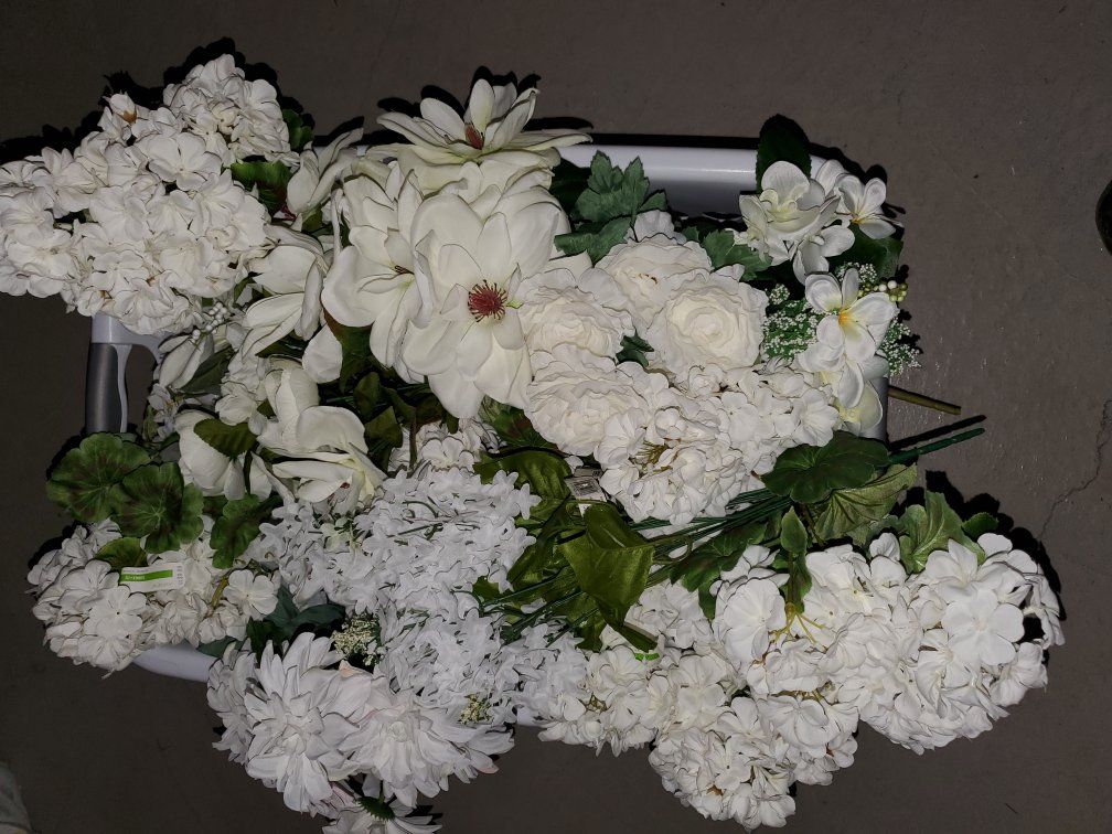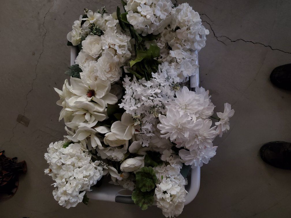 VenmoWhite Artificial Flower Assortment. Multiple assorted white flowers for a wedding. These were used for one wedding and are still in new condition. I have an basket full. Looking to sell the whole bundle. $100 OBO.