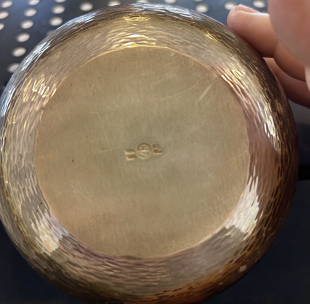 ZelleThe product is a German hammered silvered copper bowl dating back to around 1900. Handmade in Germany, this unique bowl features intricate hammered details that give it a distinctive appearance. Crafted from copper, it adds a touch of elegance and authenticity to any collection of metalware or decorative items. Perfect for collectors of German craftsmanship or those looking to add a vintage touch to their home decor, this bowl showcases the beautiful artistry and craftsmanship of the early 20th century.