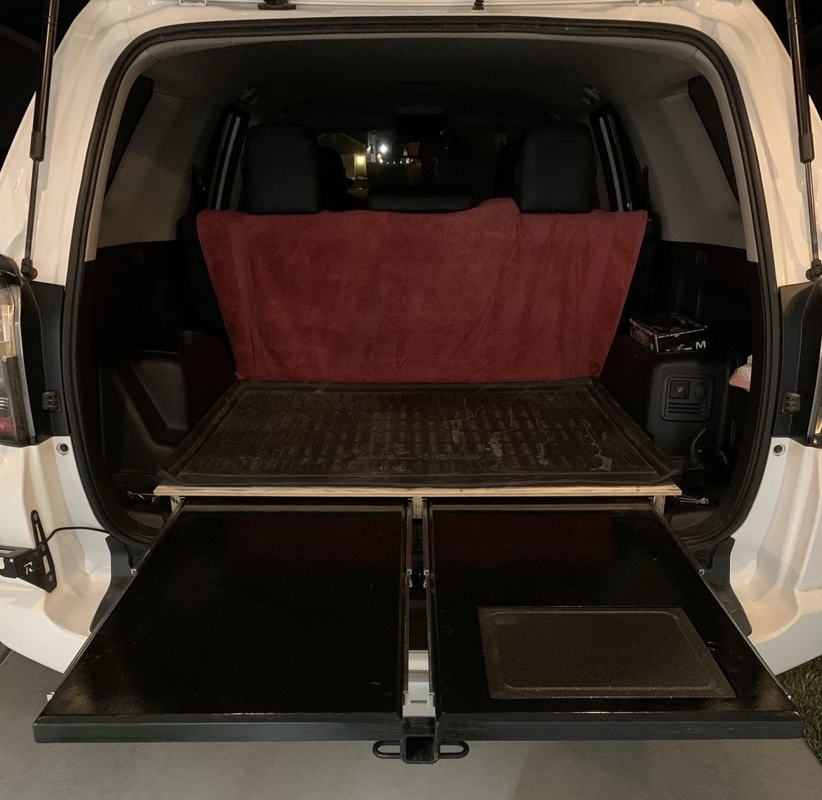 3/4” plywood baseplate that levels the cargo area to allow for sleeping. Also can be used to secure coolers and drawer systems. Slide out counters and most hardware is not included. Bolts into the factory tie-down locations.