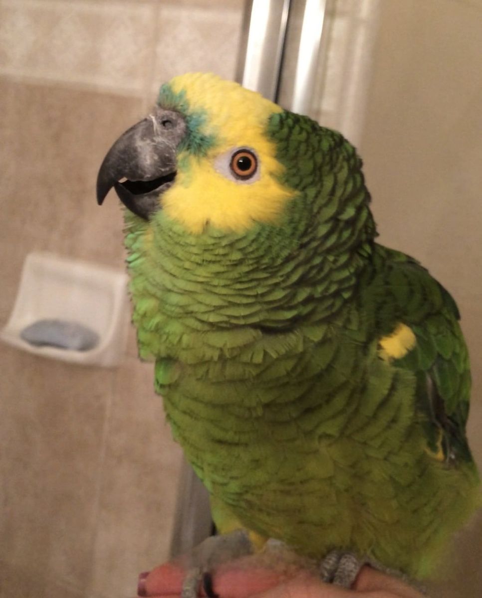 Like most Amazons, he can be loud, so he would do best in a home with experience with larger parrots who understands their personalities and needs.