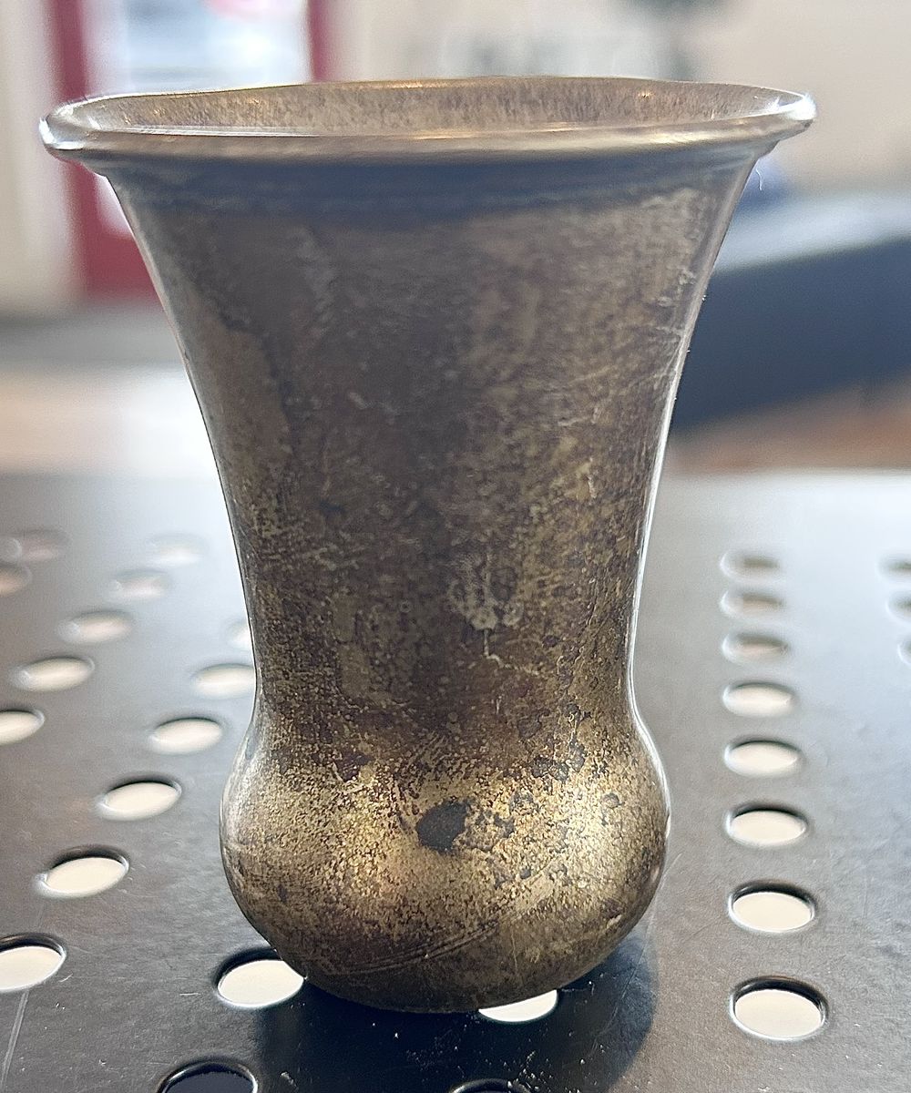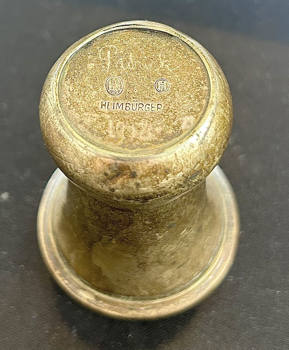 ZelleThe Heimburger 1918 Padrick Signed Silver is a rare and collectible piece of flatware that embodies the Art Deco style. This sterling silver shot glass was crafted in Germany during the early 20th century, making it a unique and valuable addition to any antique collection. With its solid silver composition and intricate design, this piece showcases the craftsmanship and elegance of a bygone era, making it a standout piece for any collector of sterling silver antiques.