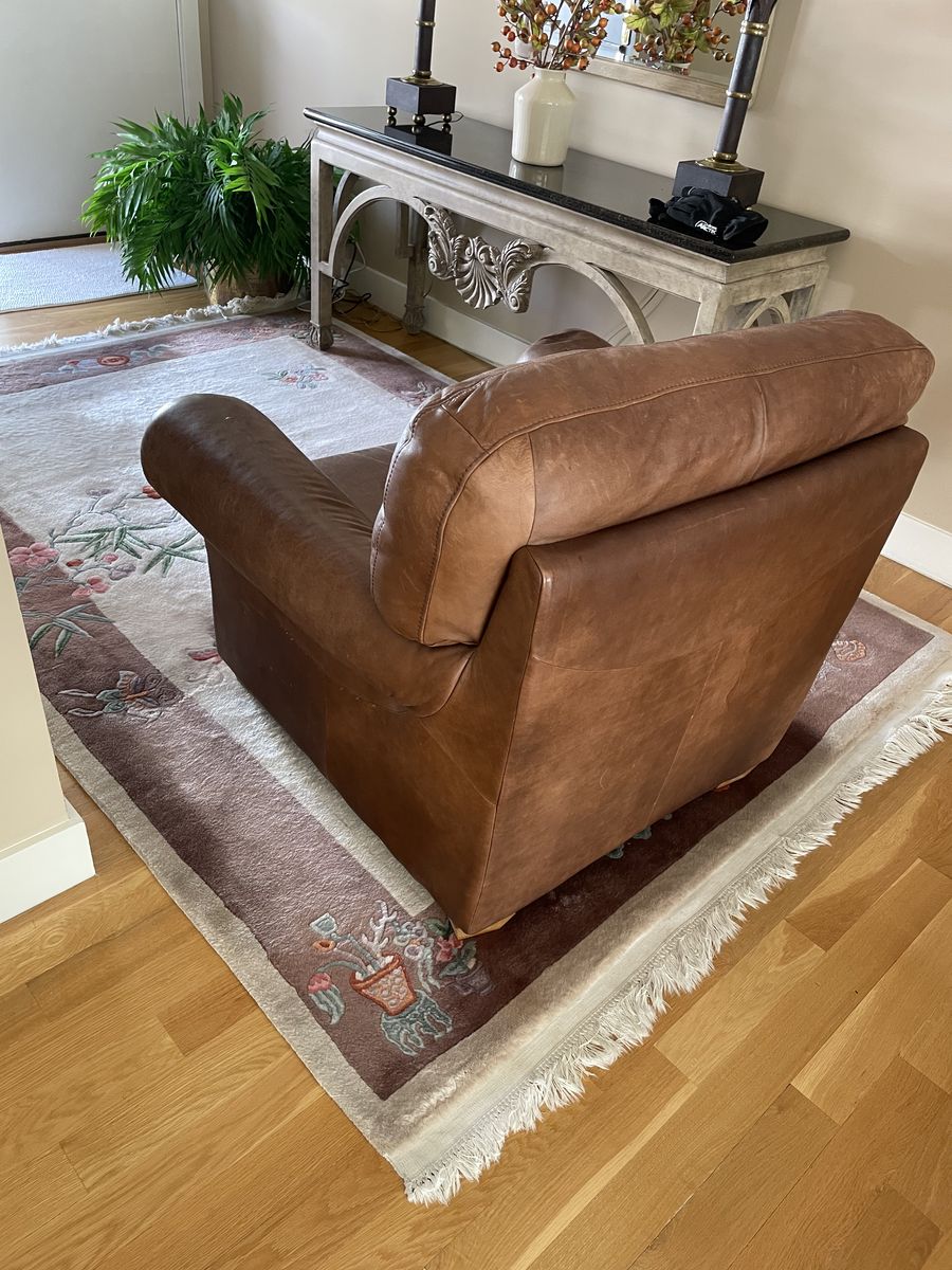 Leather lounge chair with leather ottoman. Great for lounging. Nice condition. A touch of saddle soap and a scrub will bring it to life. Large leather ottoman makes it for awesome lounging. FREE. FIRST COME FIRST SERVE.