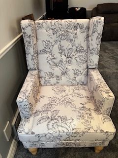 VenmoDUOMAY Tufted Accent Chair, Modern Linen Upholstered Wingback Side Arm Chair for Living Room Bedroom with Wood Legs, Comfy Reading Guest Chair for Office, Beige Flower Pattern