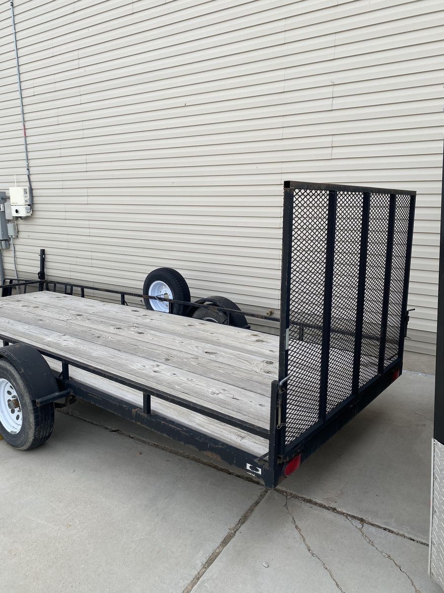 Venmo6’ x 16’ 2800# Single Axle Utility Trailer. Inside dimensions 5’9-1/2” x 16’2”. I’ve had this trailer for a while and it tows great. I just don’t have a need for it anymore. Tires are a few years old but have a lot of tread left.