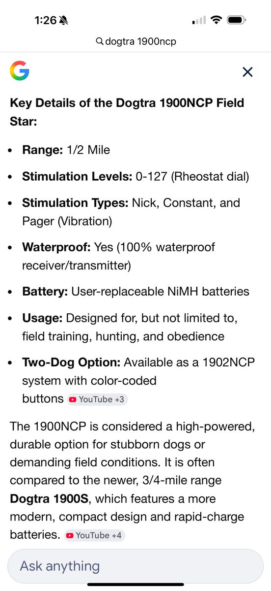 I no longer have a use for this collar. It as used on my lab for waterfowl hunting and has always worked great. 1/2 mile range, 127 levels of stim and vibration mode, nick, and constant stim. Comes in the case with everything that came with it new.