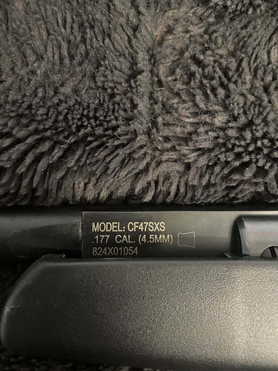 • .177 caliber (4.5mm) pellets • Includes mounted 4x32 scope • Break-barrel air rifle • Model CF47SXS