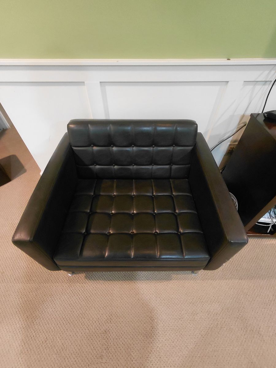 PayPalWe are redoing our basement and want to sell this furniture. All in black leather. 2 chairs 1 couch 1 settee 1 entertainment center. All leather is in good condition with some minor blemishes but NO major rips or tears.