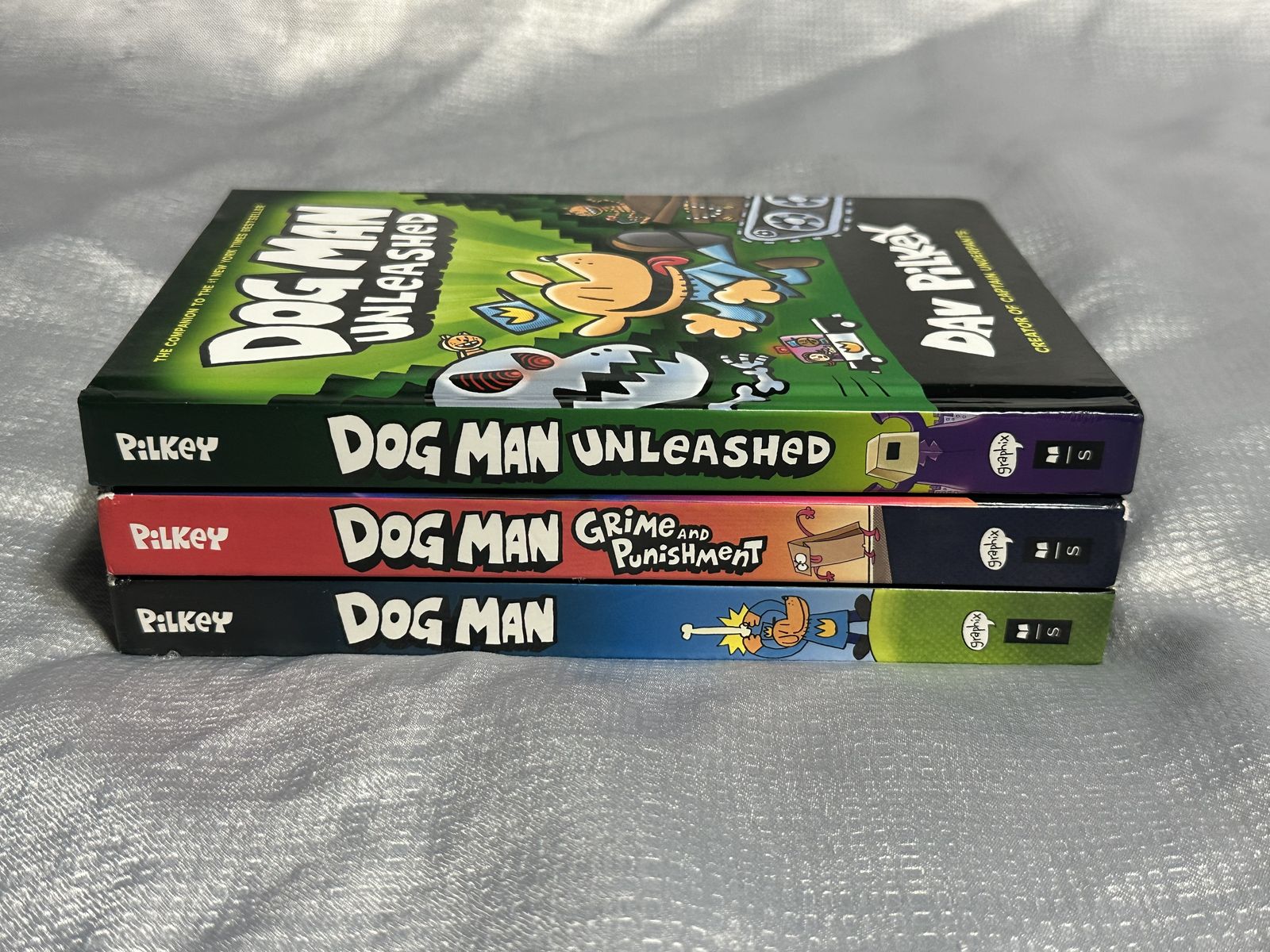 Dog Man Unleashed Dog Man Grime and Punishment Dog Man Condition: two books like new or minimal wear; one with only minimal shelf wear; no major creases, tears, or markings. Great for early readers, classroom sets, or gifting.