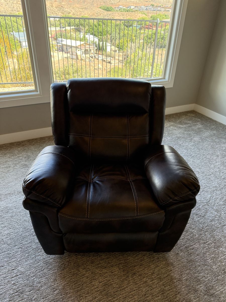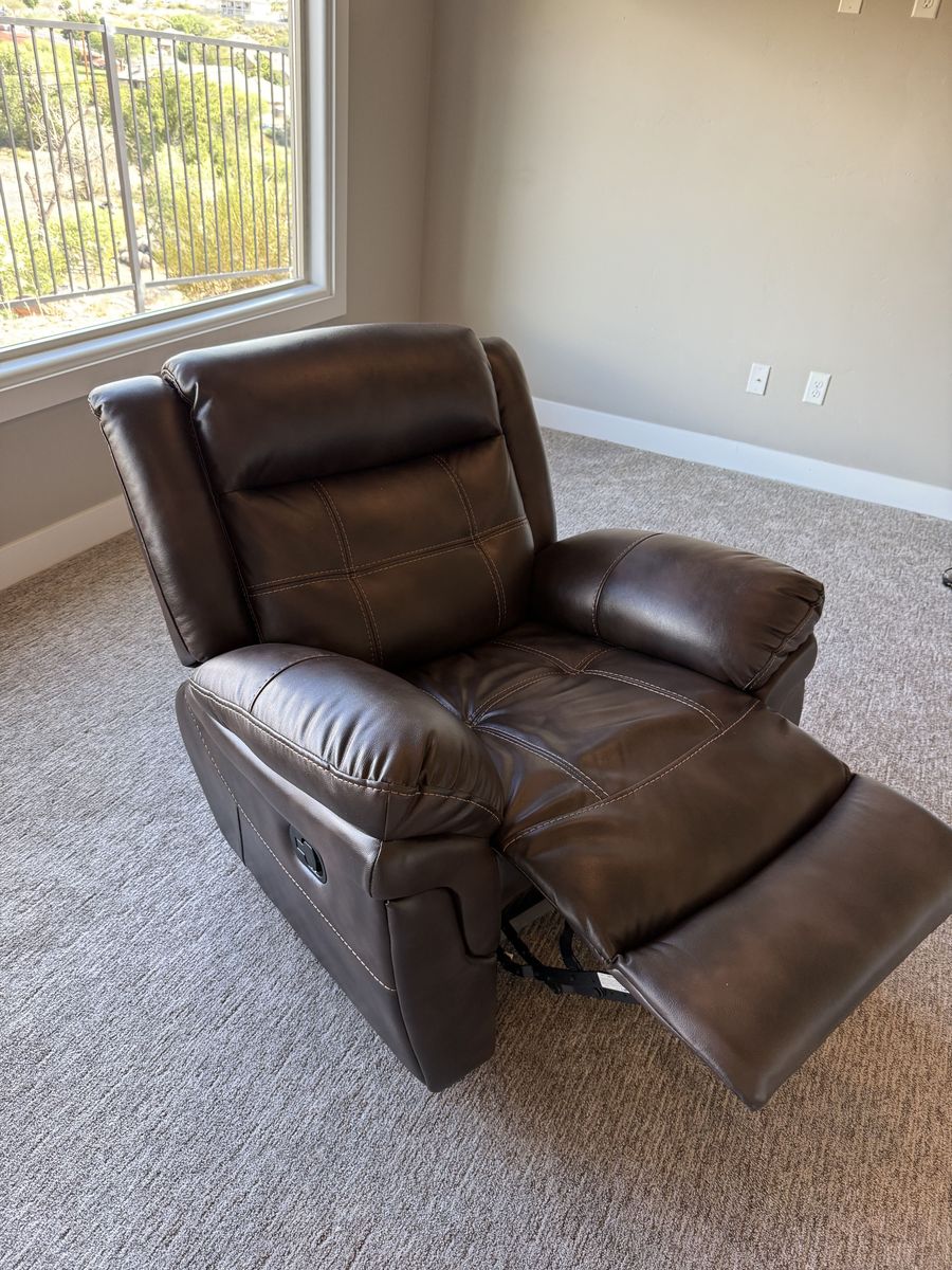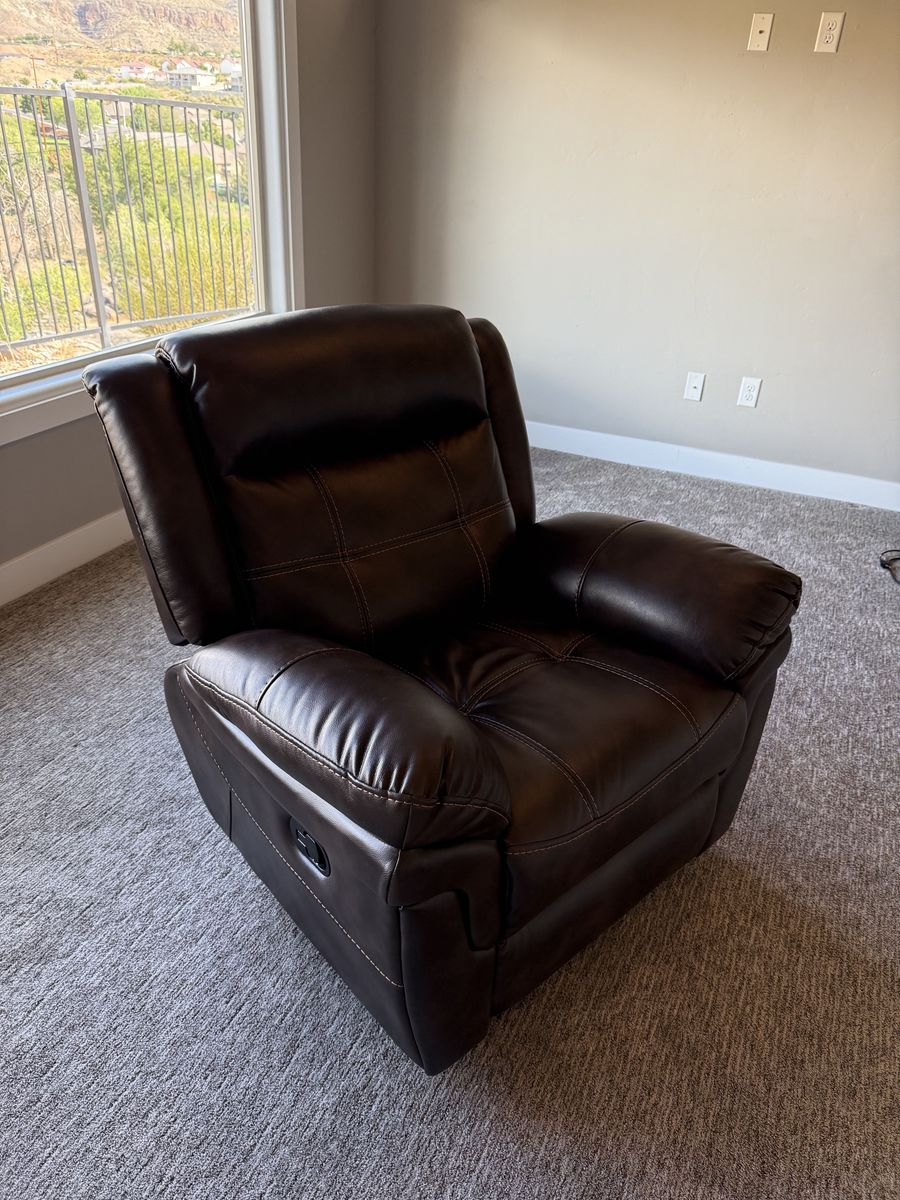 Comfortable brown leather recliner in great condition. Soft, supportive cushions with a smooth reclining feature that’s perfect for relaxing, watching TV, or reading. The rich leather finish gives it a clean, classic look that fits well in any living room.