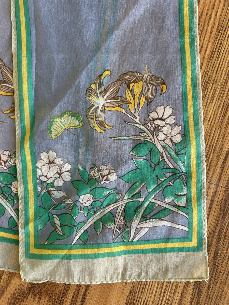 VenmoIn excellent condition, long thin floral scarf with grey, yellow, and green. Measurements are in the pictures. Perfect to wear or accessorize a handbag with. Clean smoke free. Cash or Venmo. Pick up from Alpine, Utah.