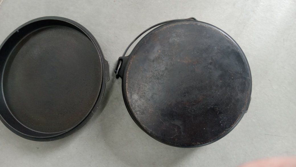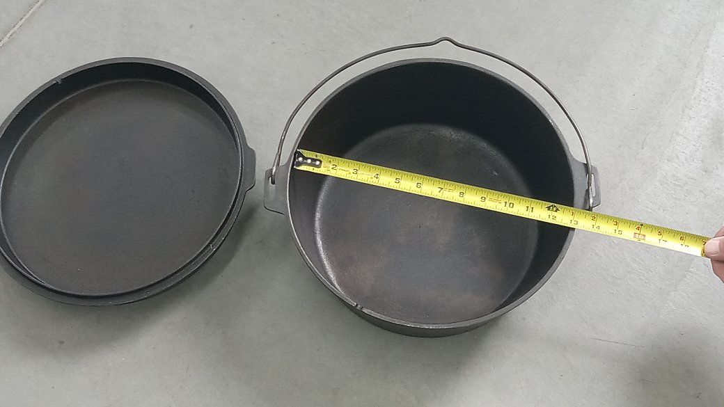 cast iron Dutch oven I removed the legs so I could use it on a grill. It has been smoothed up and seasoned.