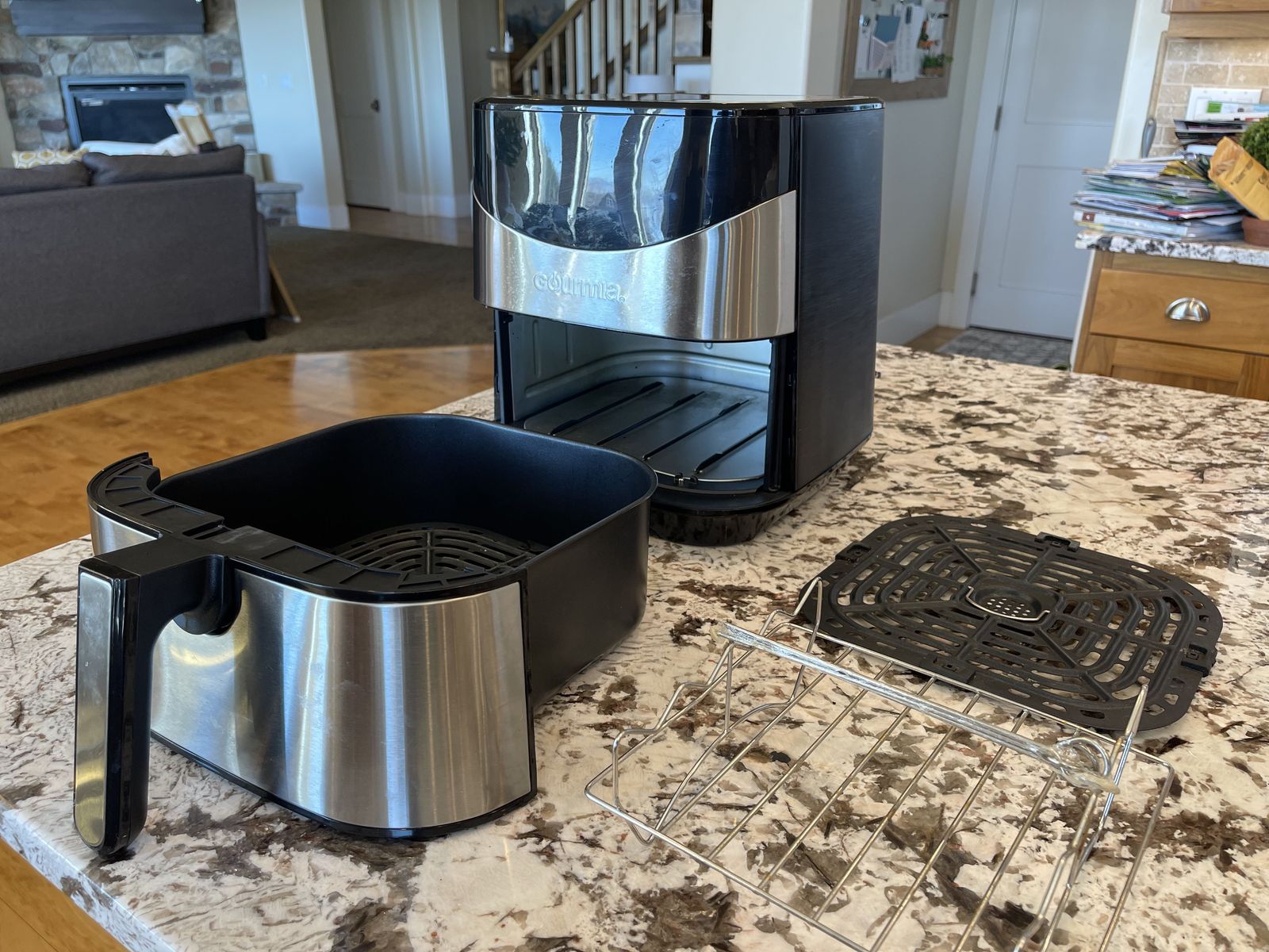 GooglePayThis has been a great air fryer. It comes with two racks and some skewers to make kabobs. It is in great condition!