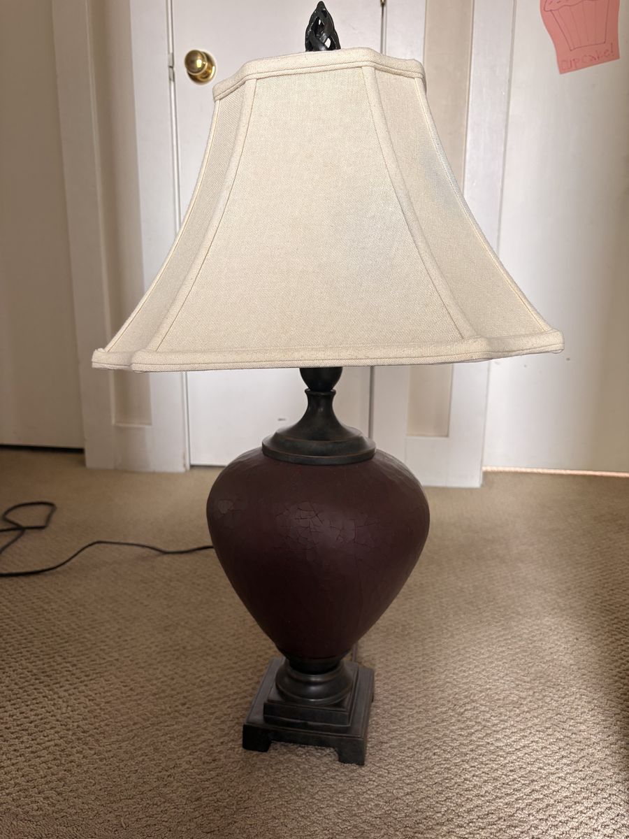 VenmoHeavy duty desk, bedstand, or table lamp in great shape. It’s 29” tall and the lamp shade is 15” x 15” at the base. Very sturdy build. Takes a regular light bulb.