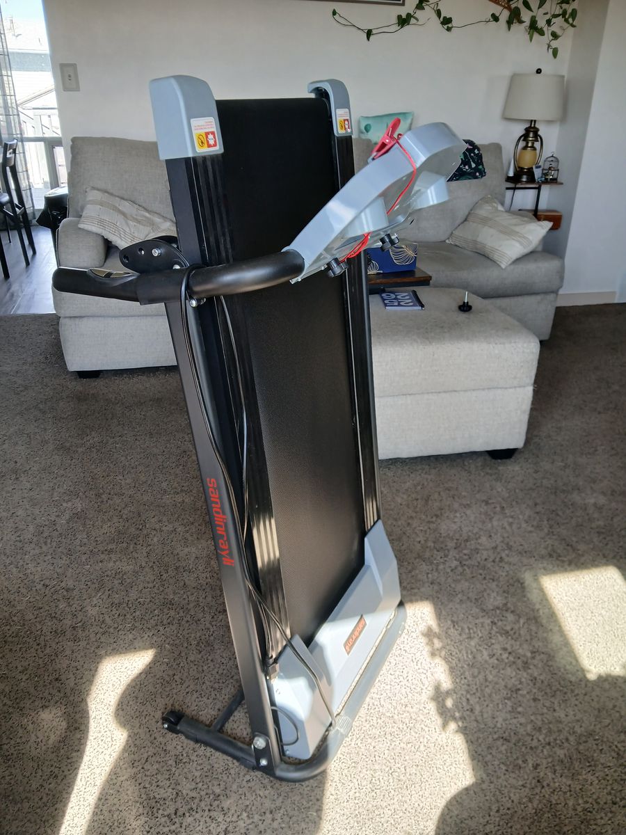 VenmoSmall, electric treadmill for small spaces. Perfect for walking or light jog. Has preset programs or just press start. Manual incline adjustment. Like new. Measures in km, so I taped a conversion chart in miles to the left side of the display.