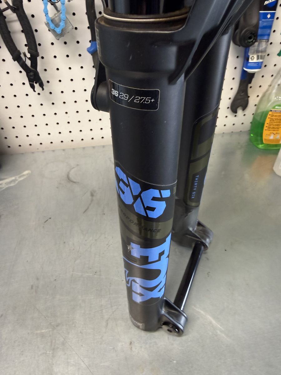 Venmo2021 model, includes Fox mud guard. Uppers clean and no scratches, bottoms a few scratches but also I sprayed brake cleaner in the garage and didn’t realize overspray hit the bike. Faded lowers shown in pics. Doesn’t affect the ride but priced accordingly. Steerer cut to 6 7/8”. Came off medium bike.