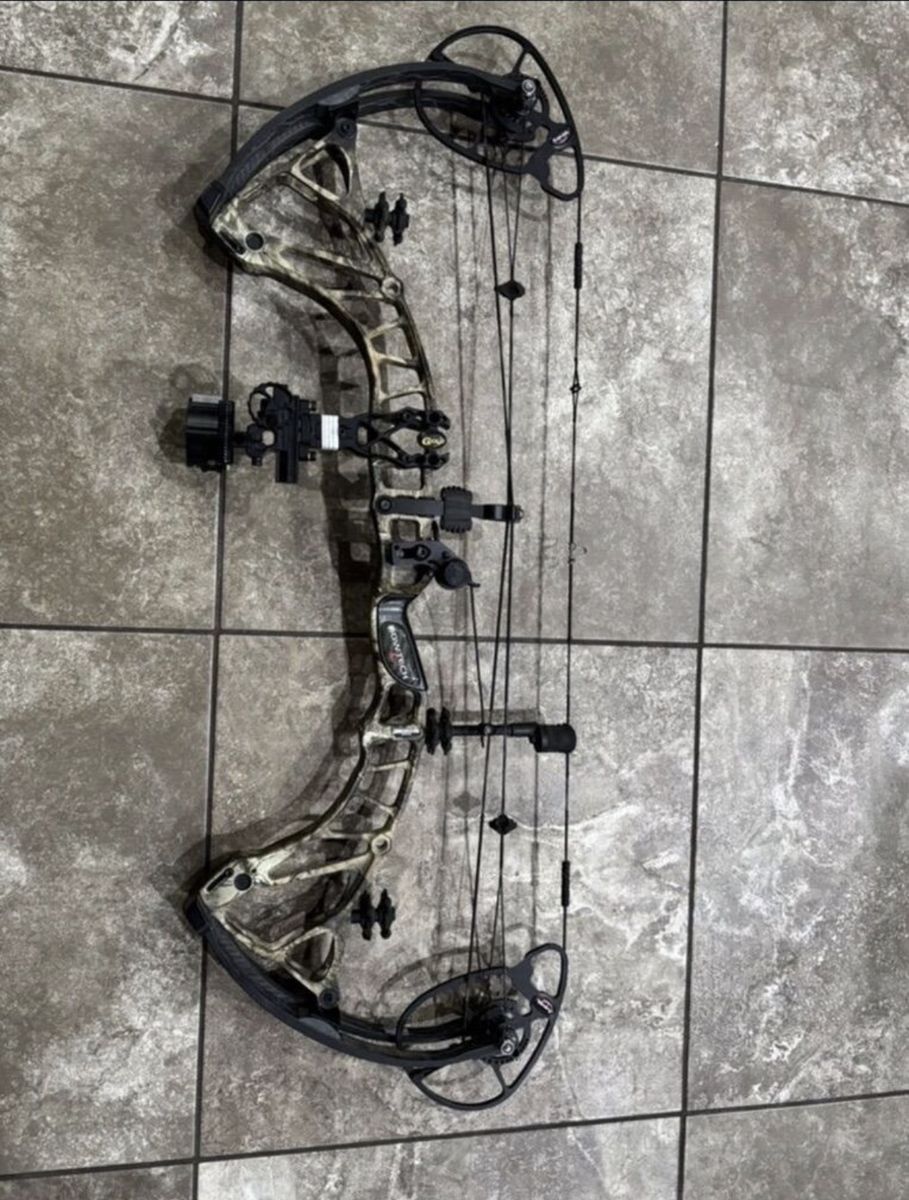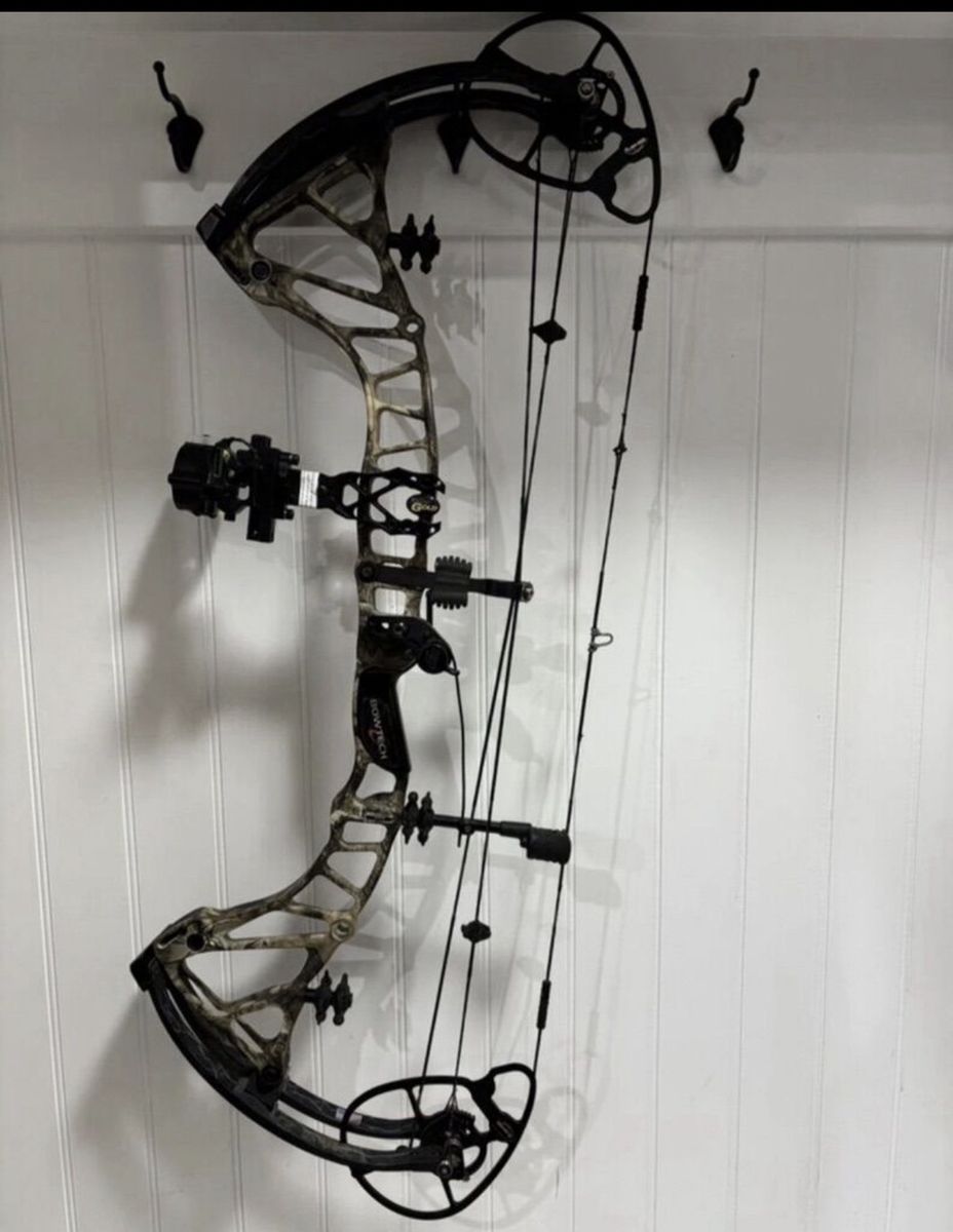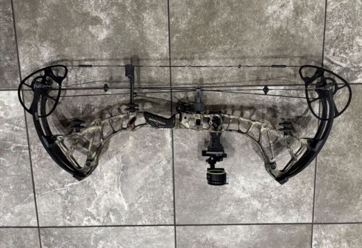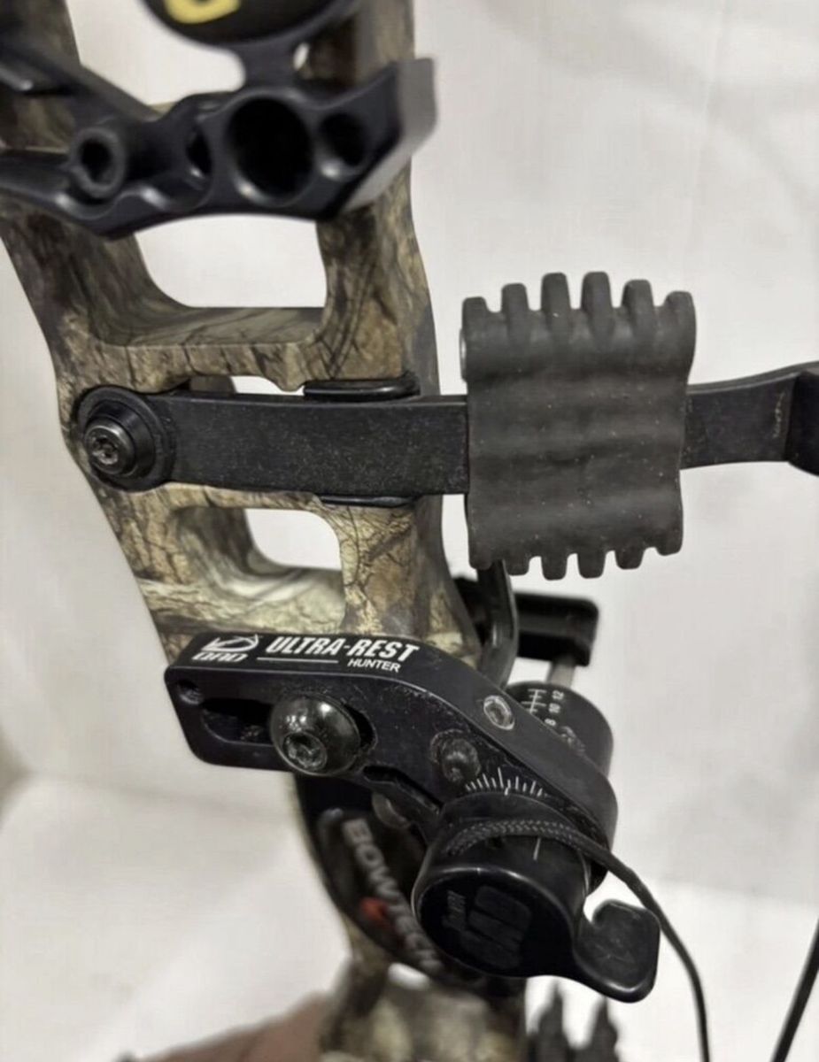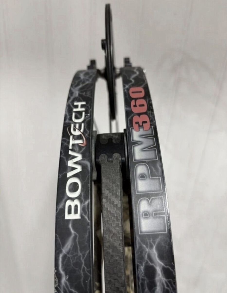 Left handed Bow Tech Rpm 360. Comes with a black gold single pin slider sight and a quad drop away rest. Located in Perry (801)5894788