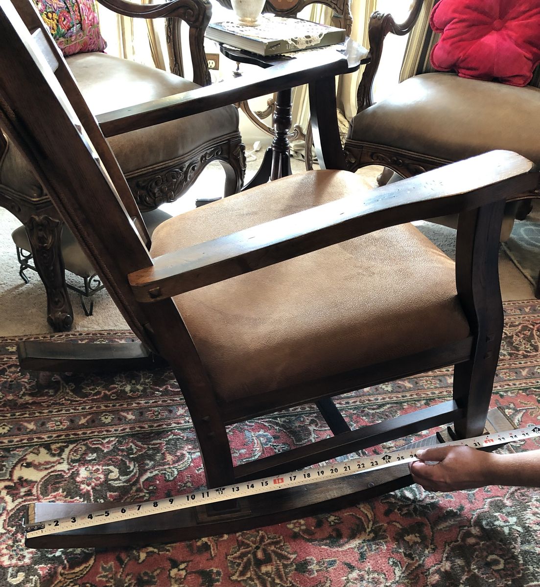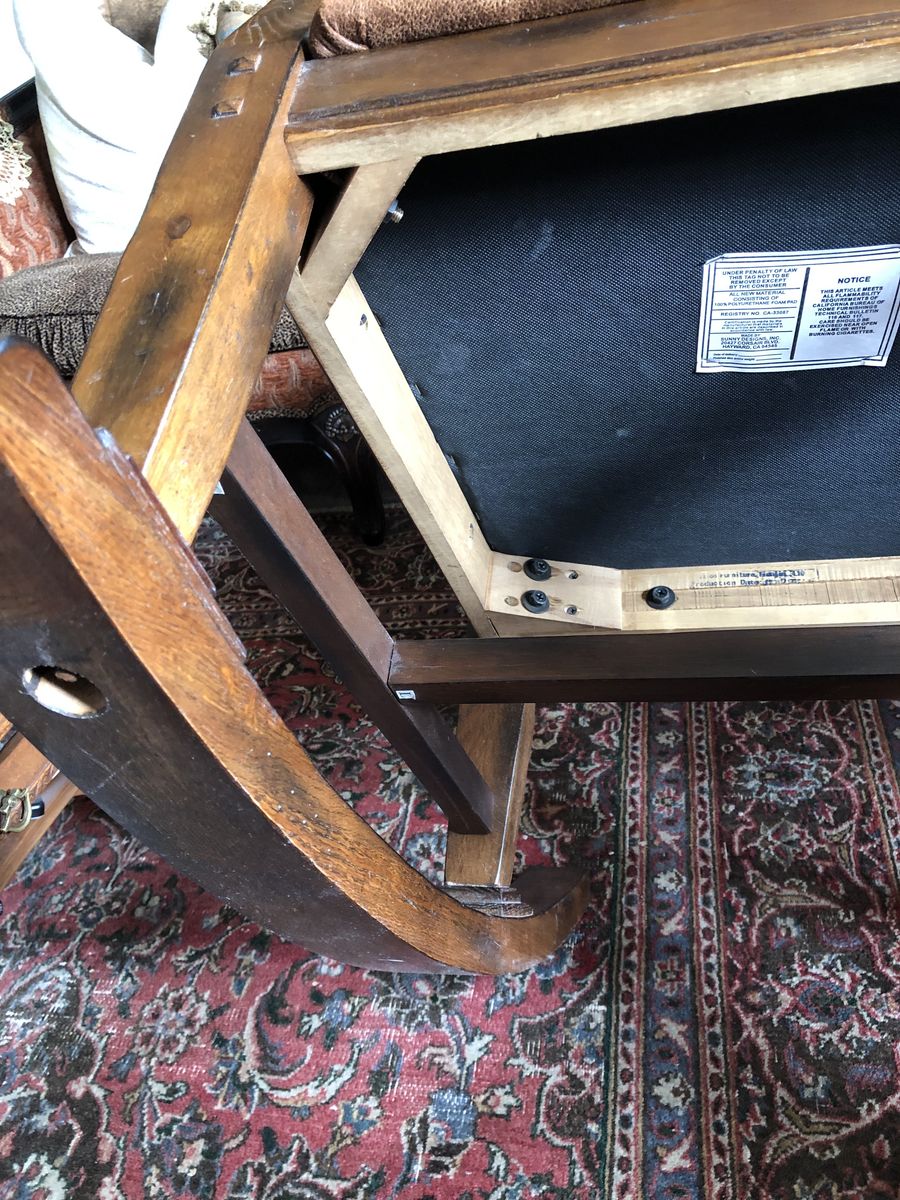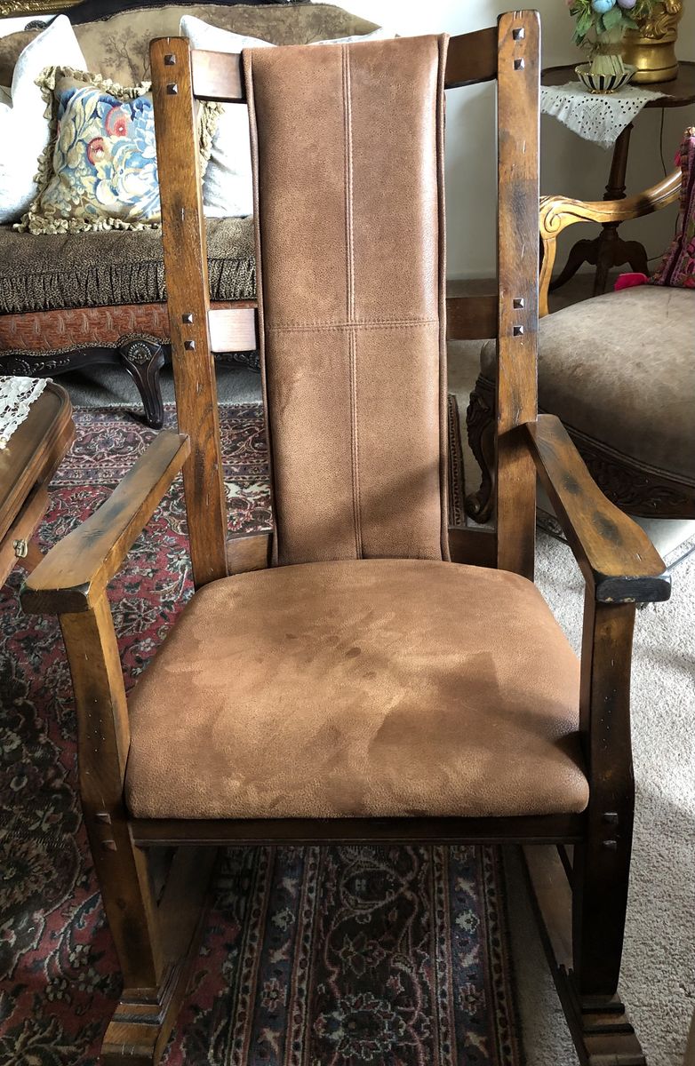PayPalThis is a beautiful sturdy faux nubuck rocking chair. It was bought at Vintage Oak store many years ago. It’s been barely used. No stains on the fabric. It’s in excellent condition.