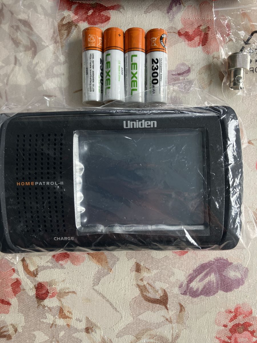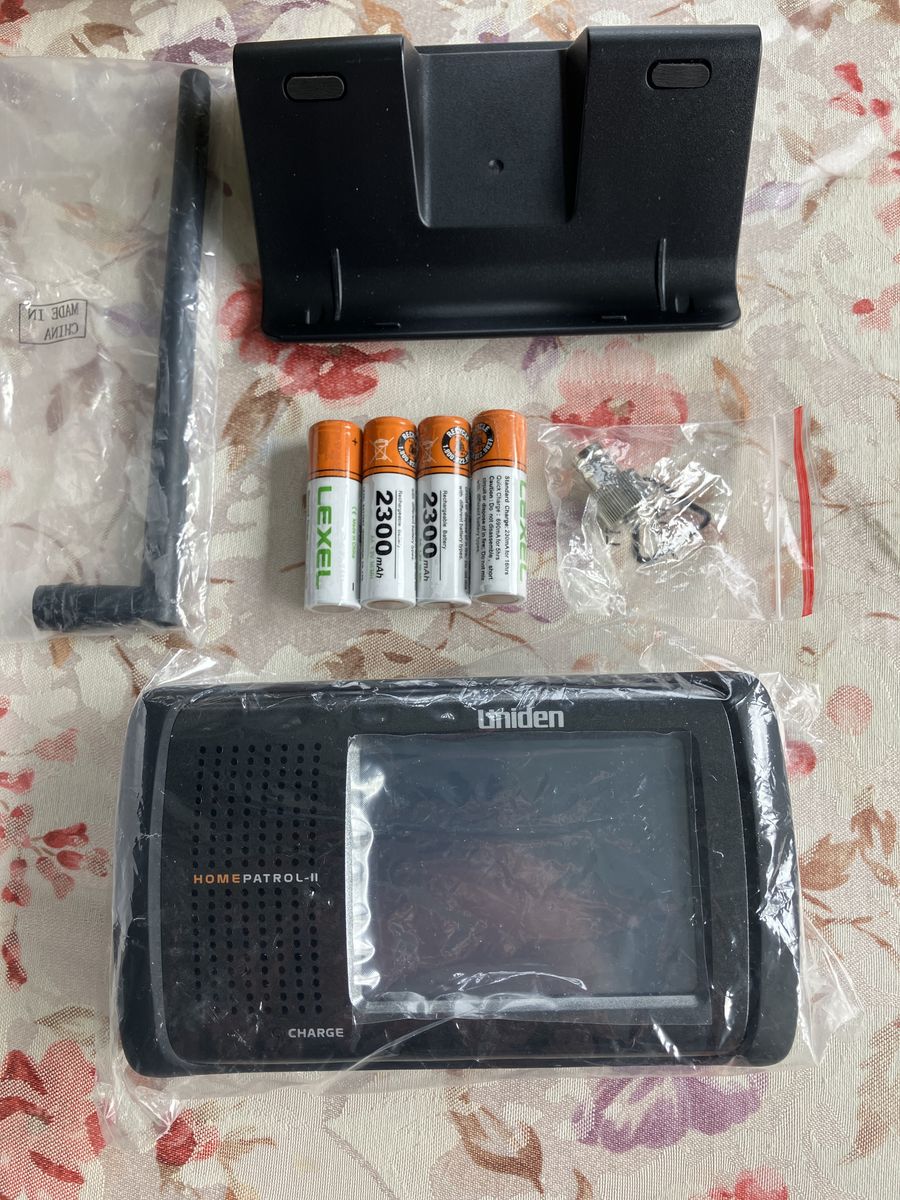 New item tested for working condition. Still has plastic on the screen. Comes with charging/programming cable.