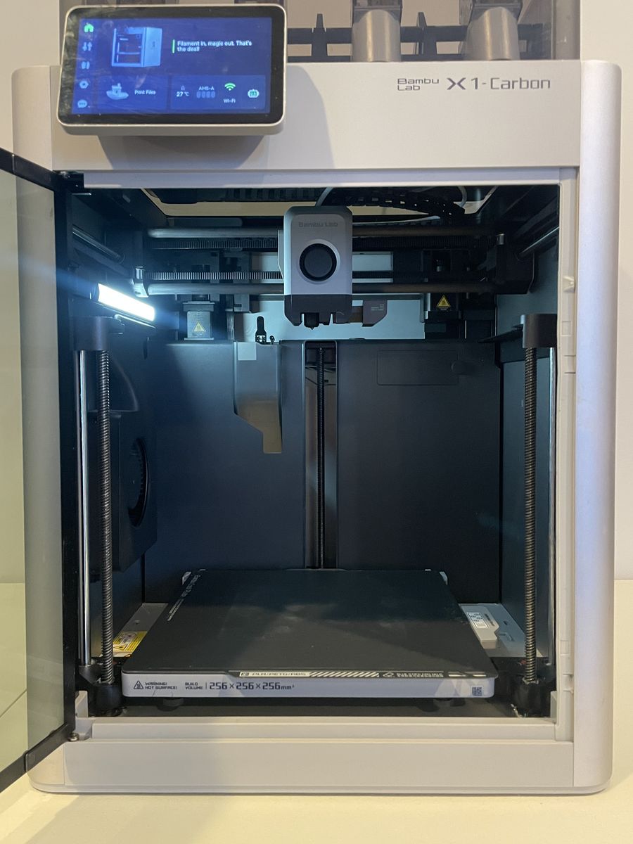 Included: • Bambu Lab X1C 3D printer • AMS (Automatic Material System) • Extra build plate • Spool of filament • Power cable