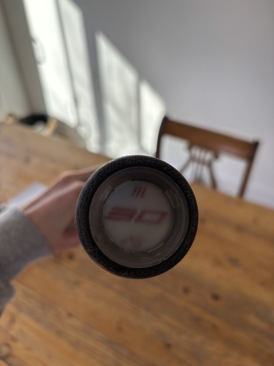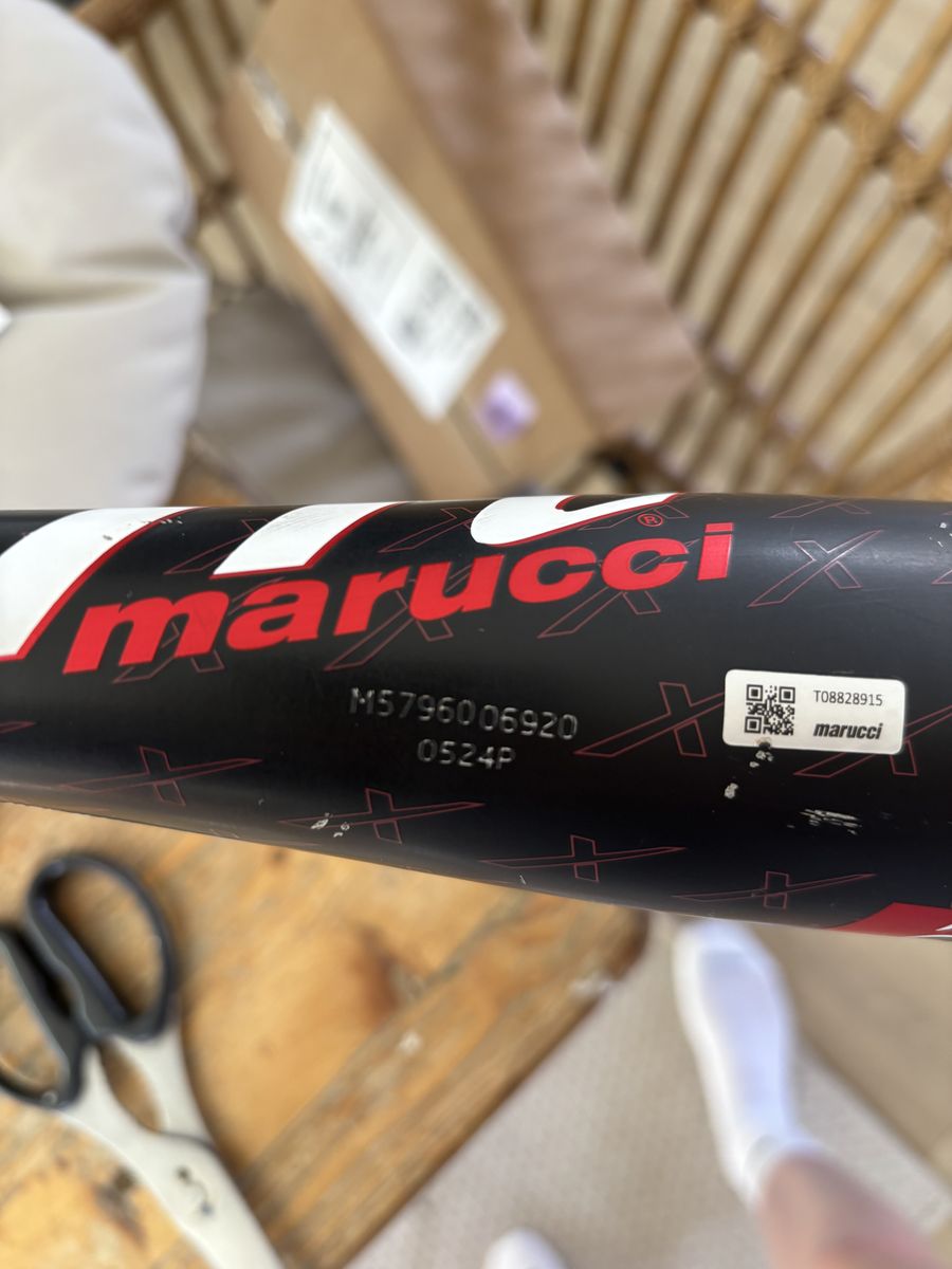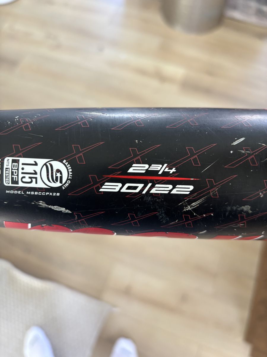 ApplePayMy son used this for one fall season and needed a longer length for spring. Marucci 30 inches long -8 & 2 3/4 barrel - it does have dings and scuffs on it, but has no dents or flaws making it unusable. We did takeoff the grip tape because it was pretty gross from grip spray he was using so it will need a new grip tape.