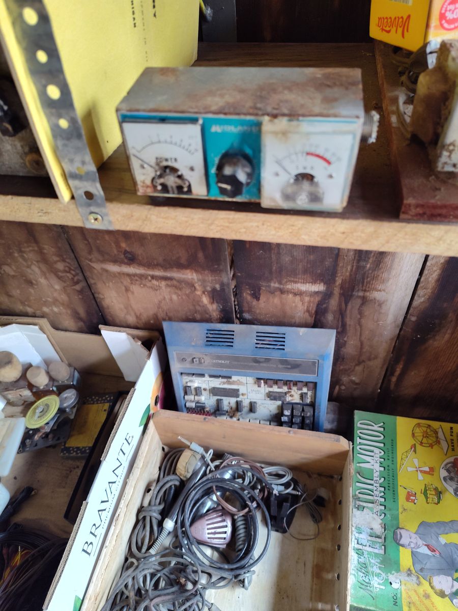 Venmo? Antenna power & S. w. r. Midland, 23 - 136 under knob. Same connector fittings on both ends of the box. Top of boxes slightly rusted and cover is missing off power meter. Father had his amateur radio license but mostly taught electric shop.