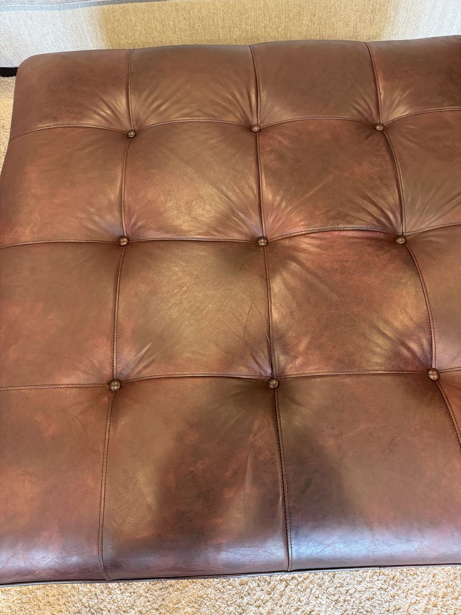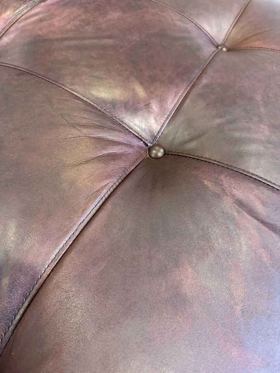This centerpiece ottoman combines luxury with versatile functionality. Crafted from high-quality, soft-touch leather, it features a deep, rich maroon/oxblood patina that adds instant warmth and sophistication to any living space.