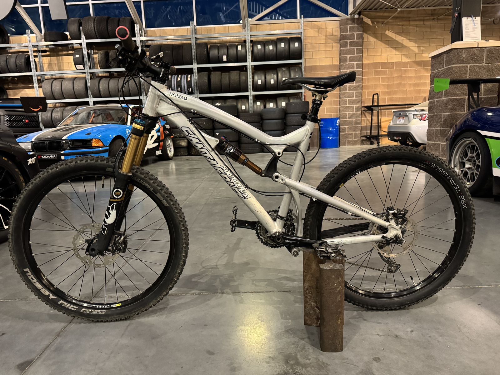 VenmoThis is a 2014ish Santa Cruz Nomad. It’s been a great bike and I have loved it. The brakes need tuned up and the seat dropper needs some love. The shocks were re-built a few years back and hasn’t been ridden a whole lot since then. The grips are pretty well shot and I had a wreck three years ago the bent the lever for the seat dropper.