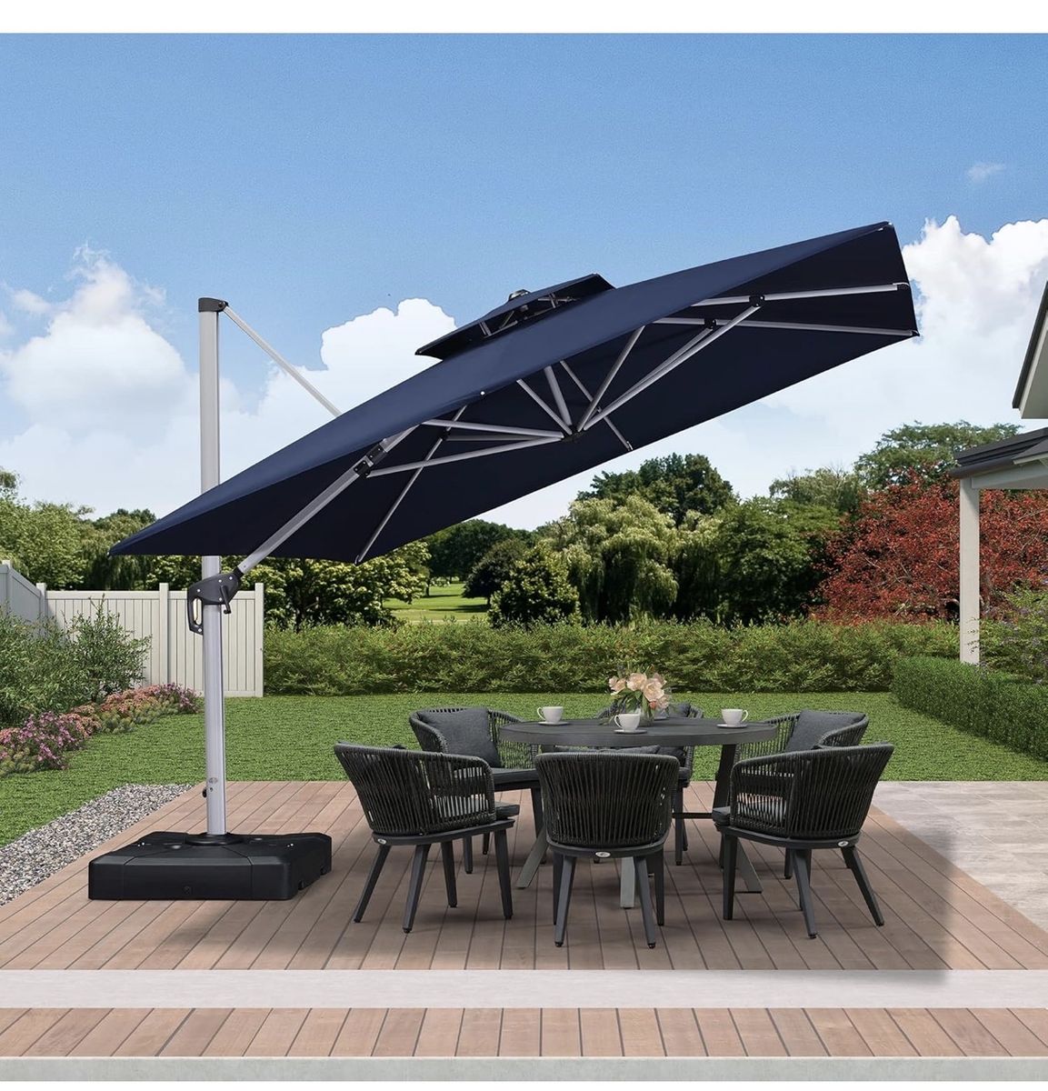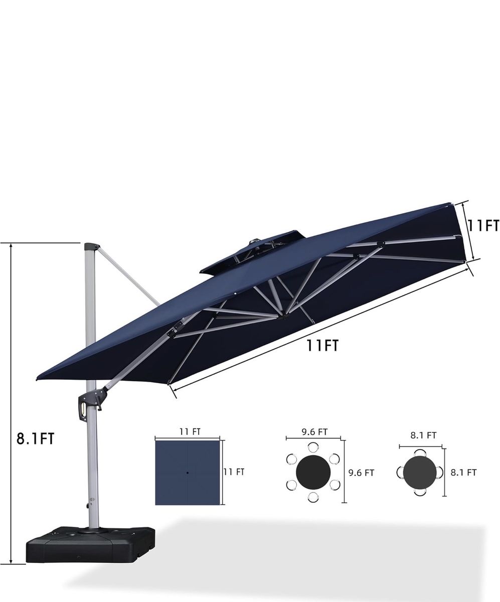 Upgrade your backyard with the gold standard of patio umbrellas. This is a PURPLE LEAF 11' x 11' deluxe square cantilever umbrella in excellent condition. This isn't the cheap hardware store version; it’s a heavy-duty, professional-grade shade solution.