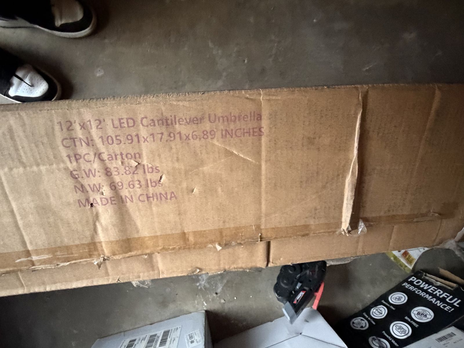 Clean, well-maintained, and works perfectly. Perfect for a pool deck or large patio. Must be able to haul (it is heavy and high quality!).