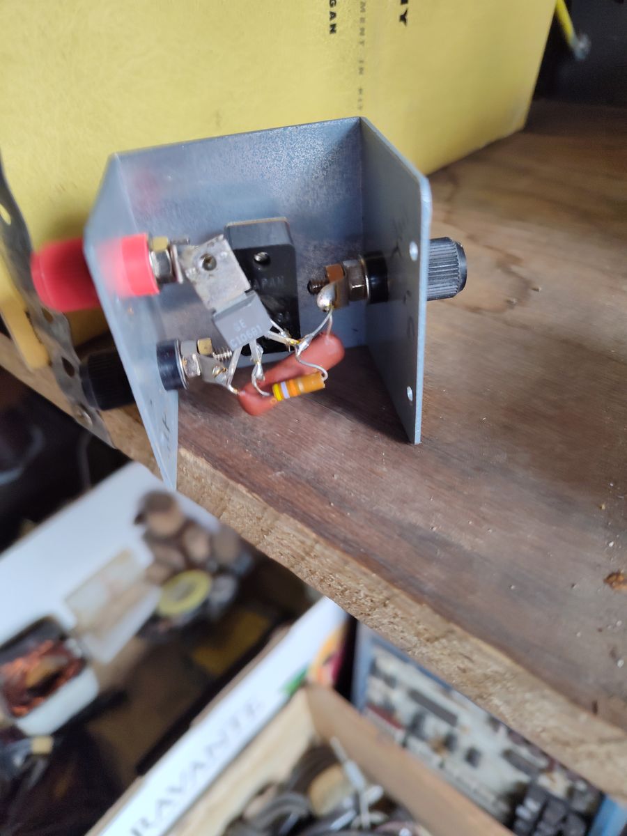 Spst switch transistor? GE c10681 capacitor .1 +- 20% resistor y pur or gold .. Switched power on & off? Father taught high School electric shop in had all kinds of gidgets and gadgets. Probably over 40 years old.