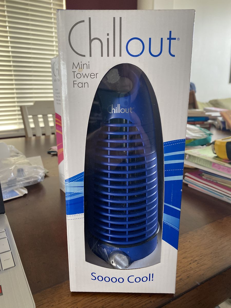 Chillout brand. Brand new. 2 speed setting. Slim design. Plug in. $21 each. Blue/gray or pink/gray.
