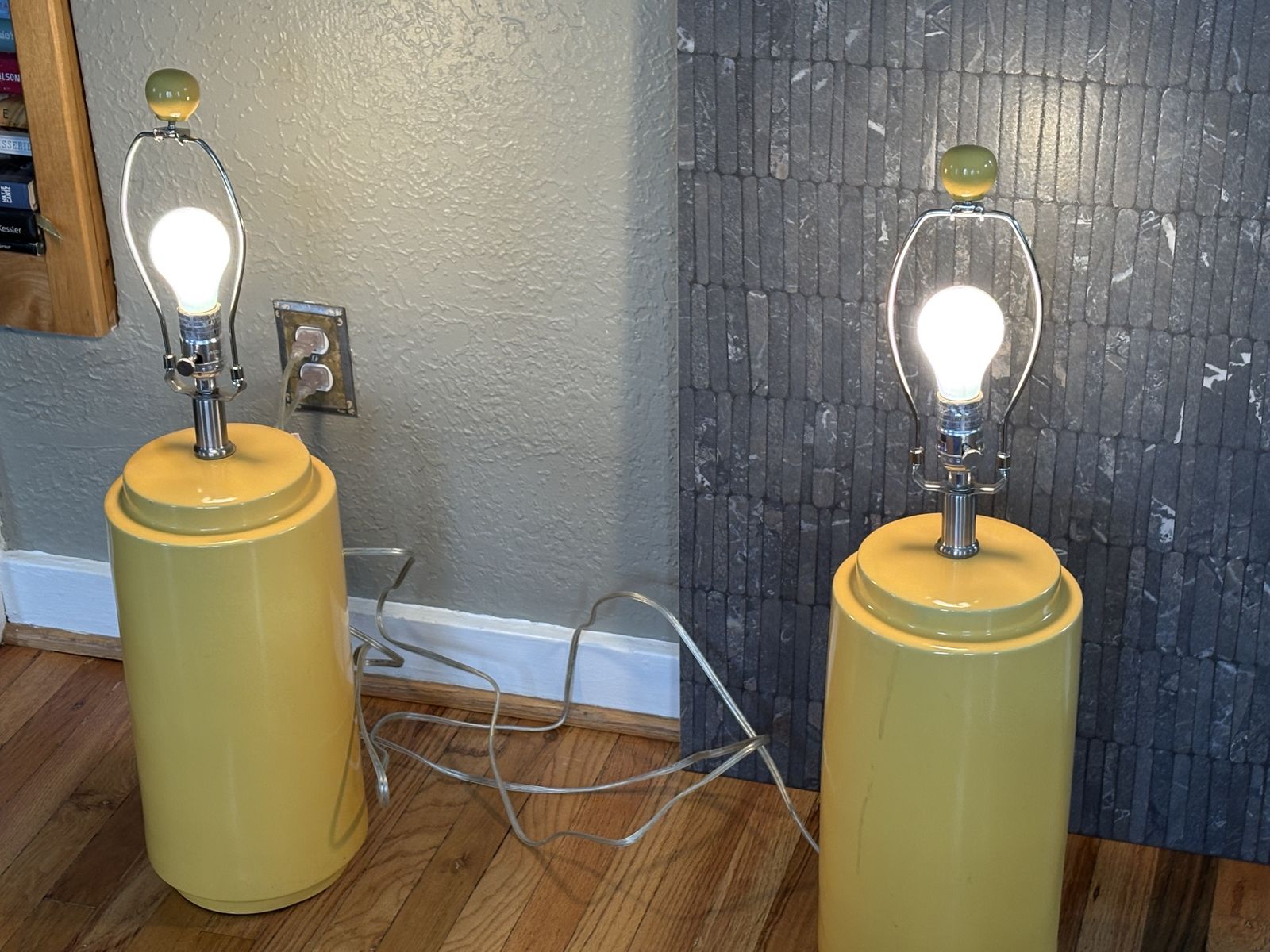 VenmoVery nice colorful pair of lamps in good order. 27" high and 16" diameter. Bold and bright