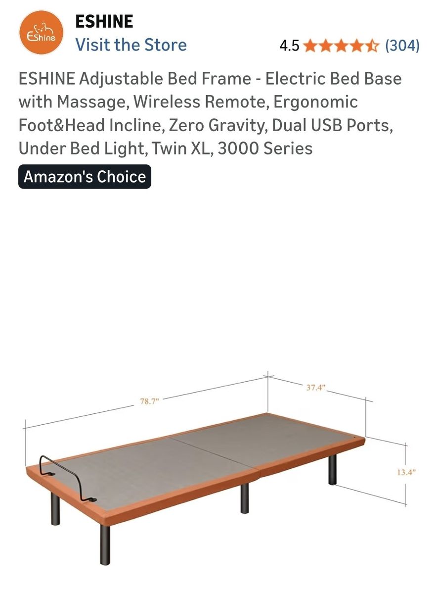 VenmoEshine Twin XL adjustable bed base (no mattress) Fully functional with remote Lightly used Delivery possible for a fee