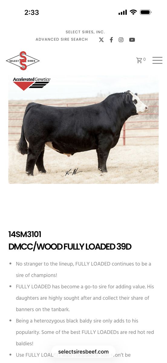 Yearling Sim-Angus Bull for sale. He is sired by fully loaded(last picture) and dam is a grand daughter of SAV Resource. This bull is moderate framed, with width and mass and length . He has a nice wide top on him, if you are looking for a great sim-angus bull here is the one. He will add mass and weight to those calves in the fall, with calf prices up. No better time to get a great growth bulls. He will be semen and trich tested.
