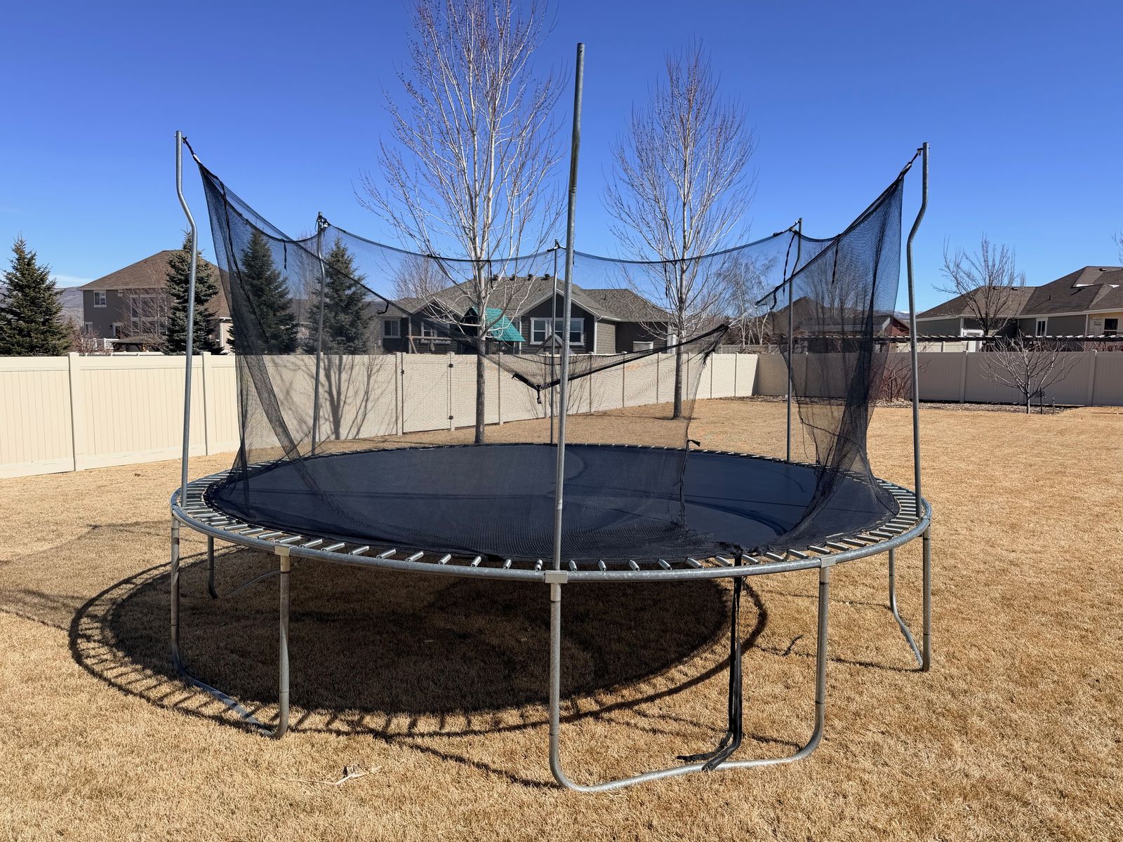 VenmoWe replaced this trampoline since the net is damaged, mainly the zipper area. It can be taken with or without the net and enclosure parts. The mat is perfect with no tears or visable damage. I will leave it set up so that it can been looked at before it is disassembled.