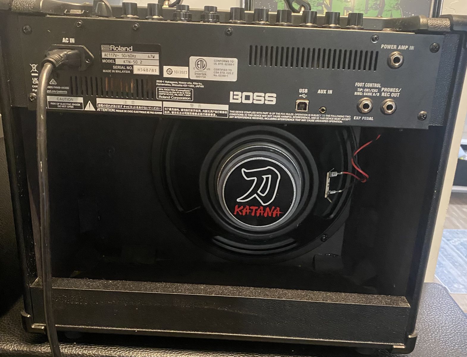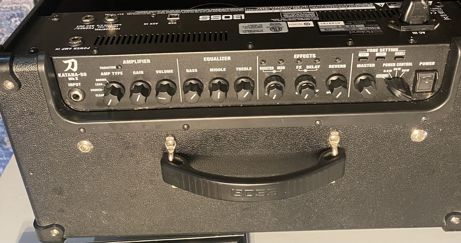 Used BOSS Katana KTN50 MKII 50W 1x12 Guitar Combo Amp in great condition, offering versatile tones and powerful performance. Featuring five amp voicings, five simultaneous effects, and a custom 12-inch speaker, it delivers rich sound with 50 watts of solid-state power. I