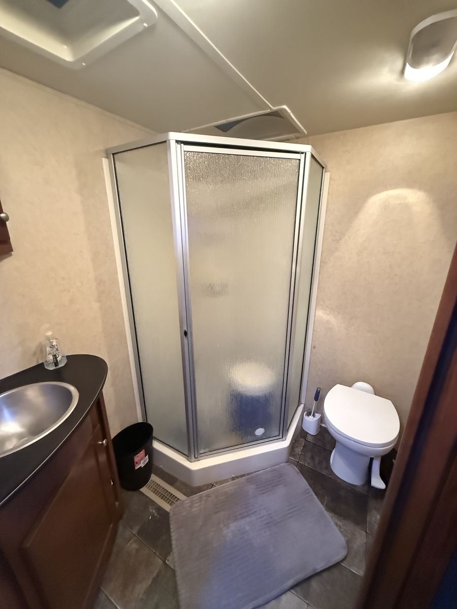 Voltage V3005 series 35' 10' garage 96 gal fresh water 40 gal black 70 gal gray Two AC units Washer and dryer hookups Double rear bunks Fuel station Recent upgrades: Porcelain toilet, newer front jacks, batteries, tires, faucets, water pump.
