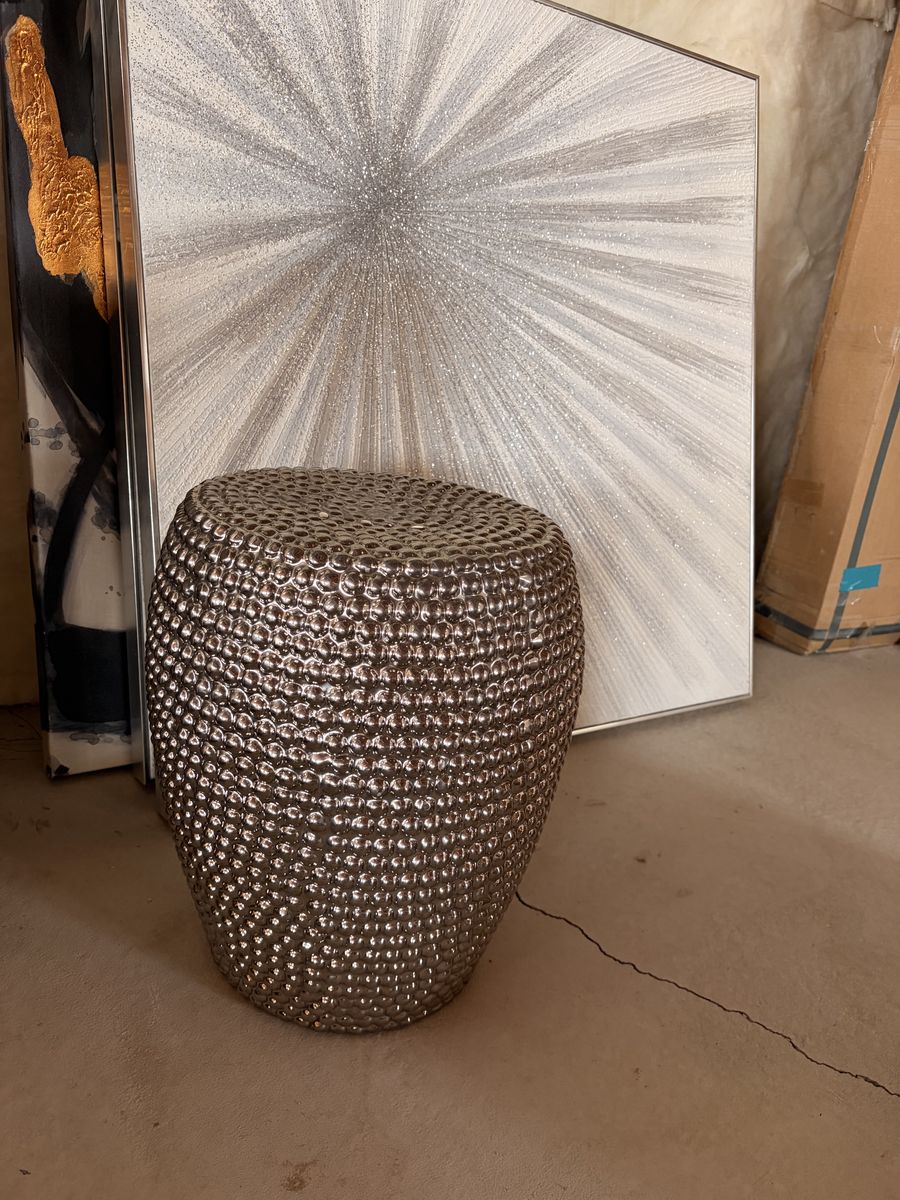 VenmoBubble texture silver metal side table. Small chip on top (pictured)