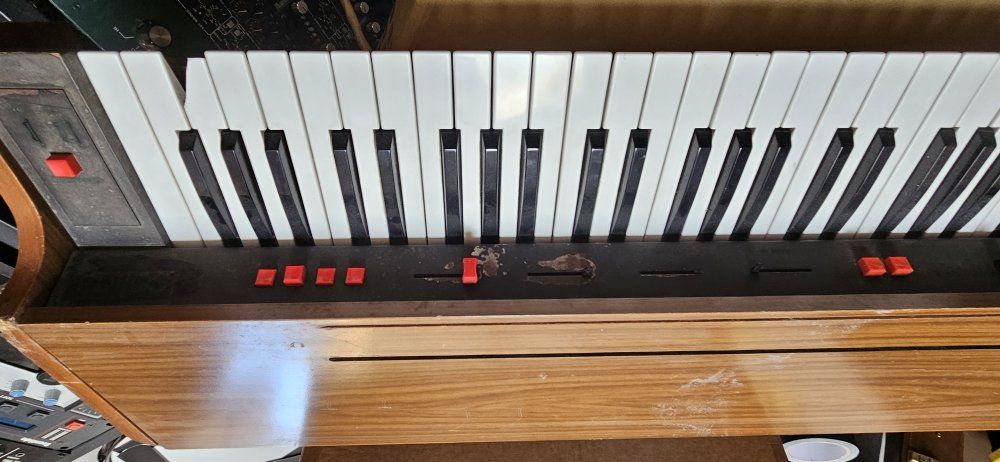 cosmetically ok, but functionally perfect. I had the keybed gone over by my tech and it plays great