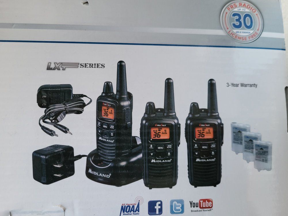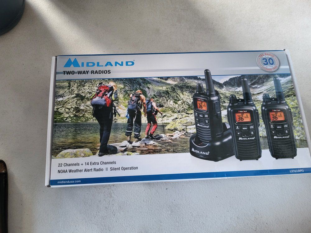 Midland 2Way Radios Includes: 3 Radios 3 Belt Strap Chargers AC Adapter Brand New *&