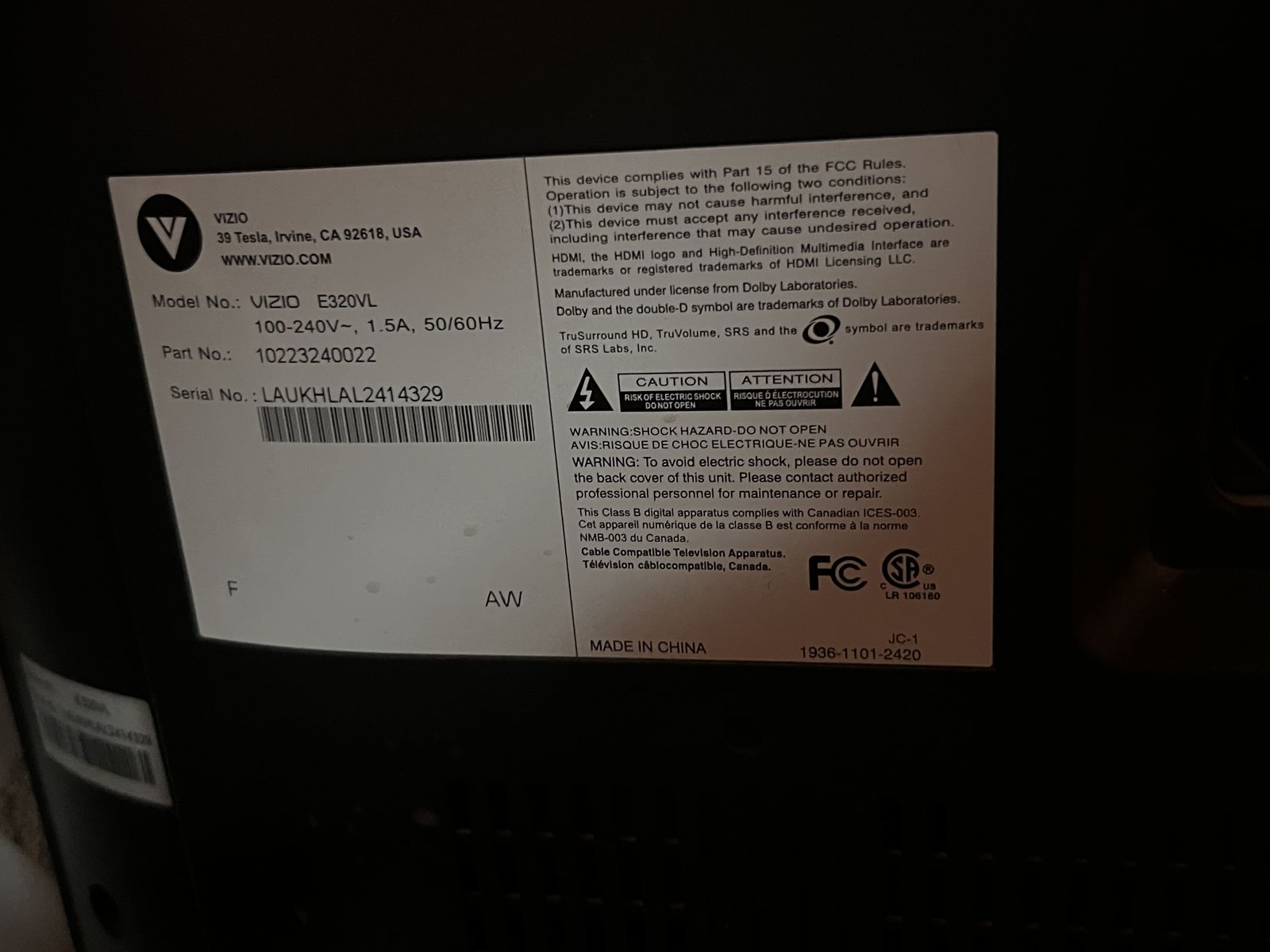 ApplePayVizio TV. Older model. Not a smart tv. We used with a Roku and antenna. Pickup in Roy.