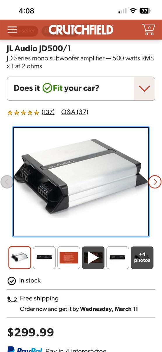 CashAppJL audio JD 500/1 car amplifier if you want quality you know JL audio is top of the line you really don’t get no better selling amplifier for 175 I paid about 350 with taxes, but I’ll let it go for 175 total.