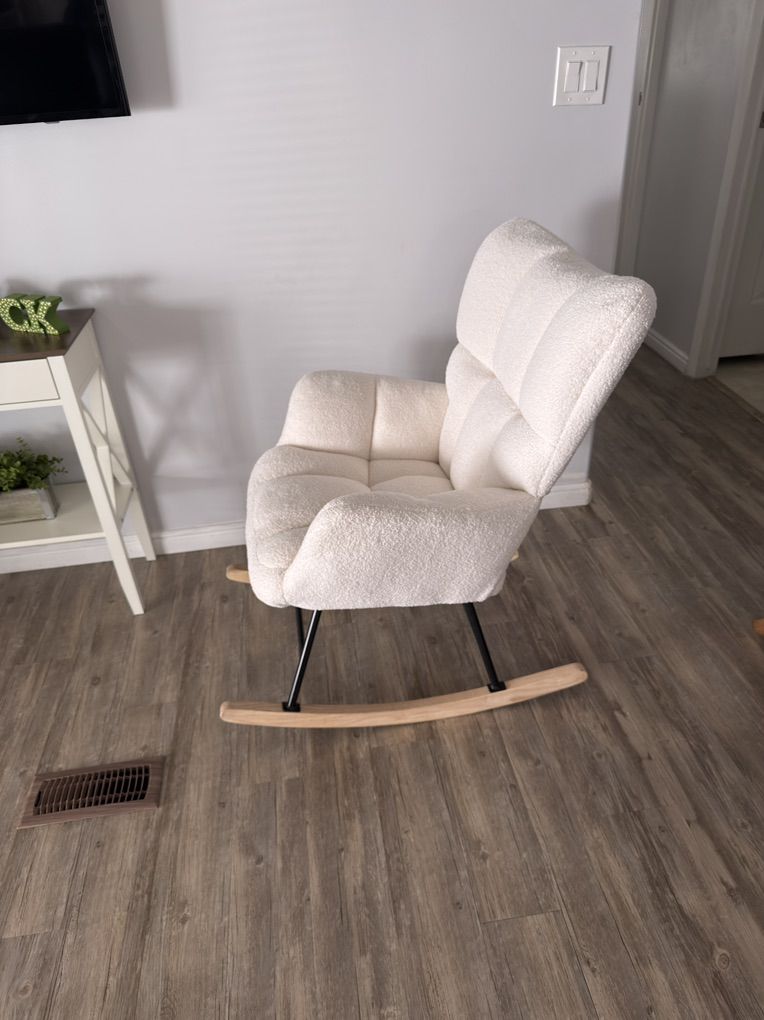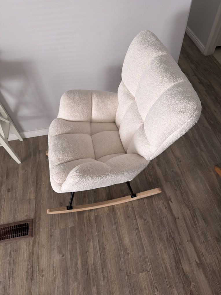 VenmoRocking chair Teddy upholstered glider. Accent chair with padded seat and high backrest. We bought this rocking chair to hold our twin grandsons when their parents visited our home and no longer need it. Easy to clean with a damp cloth. Come pick it up in Sandy. Thanks!