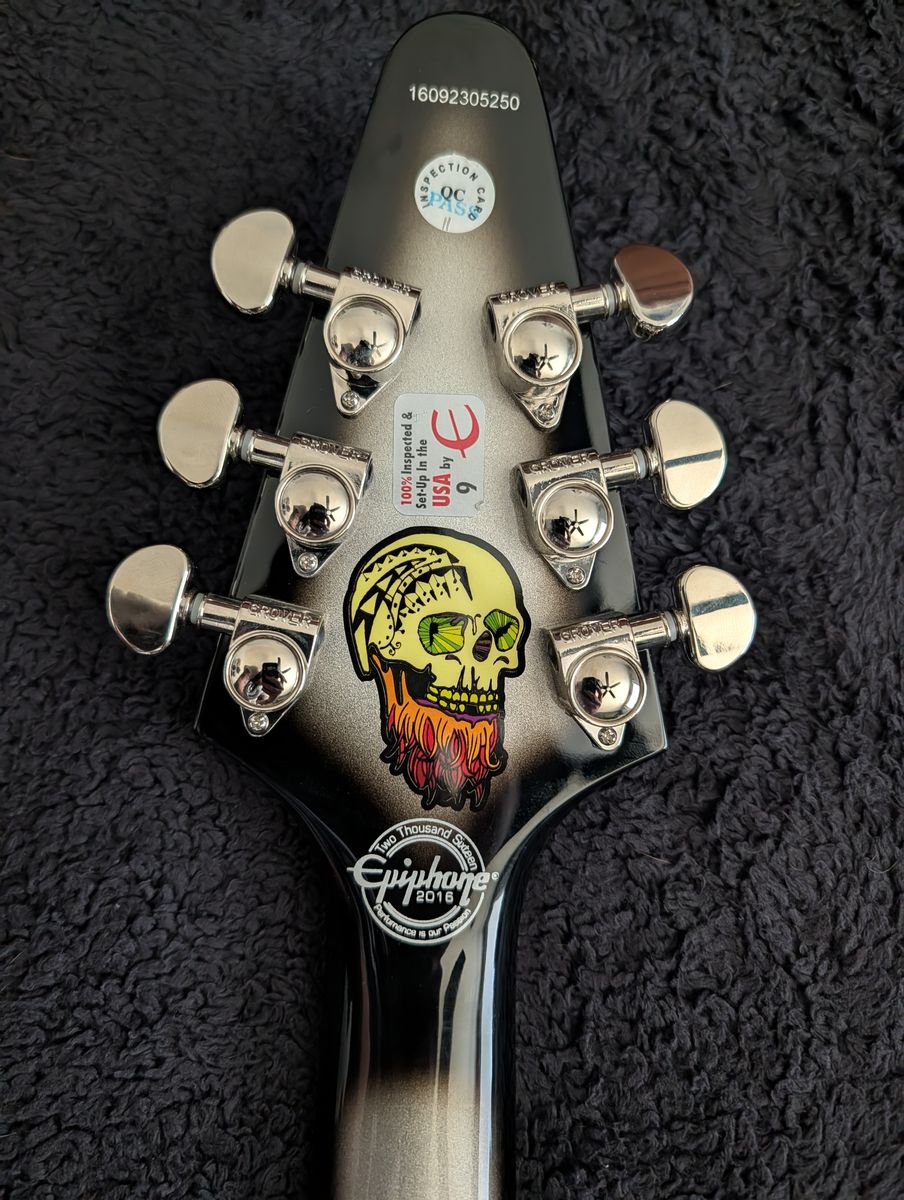 Other Features: Grover Rotomatic tuners, 12" radius ebony fretboard, Epiphone LockTone Tune-o-matic bridge