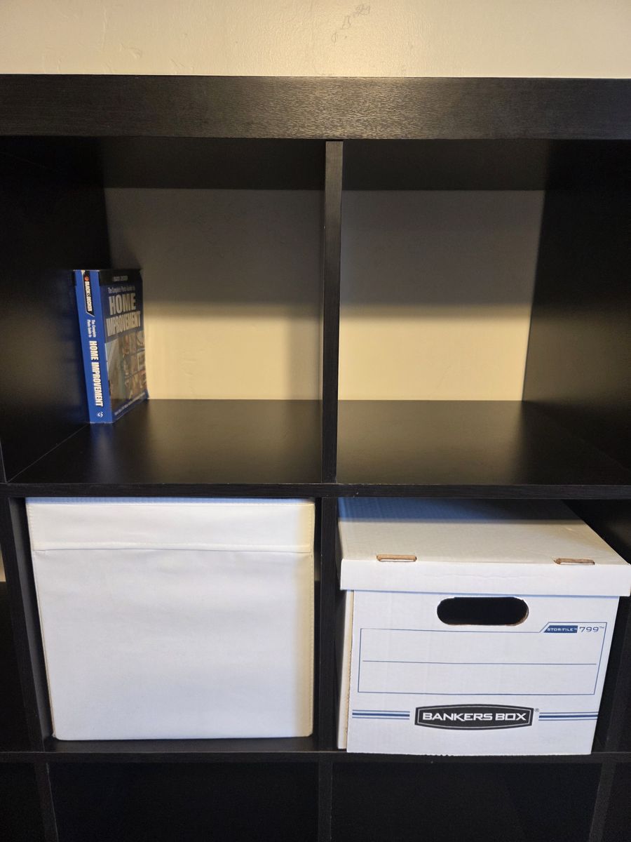 VenmoA sturdy black 4x4 cube organizer shelf (16 cubes total) measuring approximately 59" wide x 59" tall x ~15" deep (standard cube depth). great condition, perfect for books, storage bins, office organization, garage, or kids' rooms. Fits standard 13 x 13 -14" fabric cubes/inserts (like the ones shown).