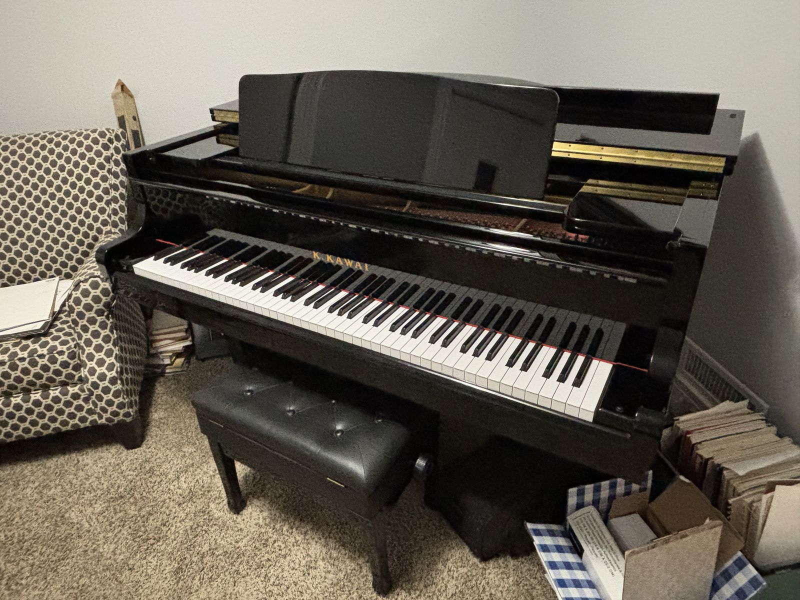 Beautiful Kawai GM-10K baby grand piano in polished ebony finish. Purchased new in 2015 for our daughter during her senior year, but she moved away shortly afterward, so the piano has seen very minimal use—likely under 300 hours total.