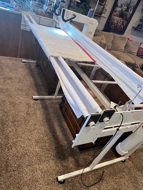 PayPalBaby Lock Gallant longarm quilting machine with Villa frame and 2-foot extension for sale. This is a great longarm setup for anyone looking to start quilting on a frame system.