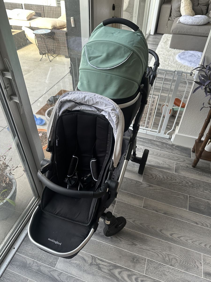 Lightly used Mockingbird stroller with some great upgrades! Can be used with just the seat, just the bassinet, or both together. Includes: