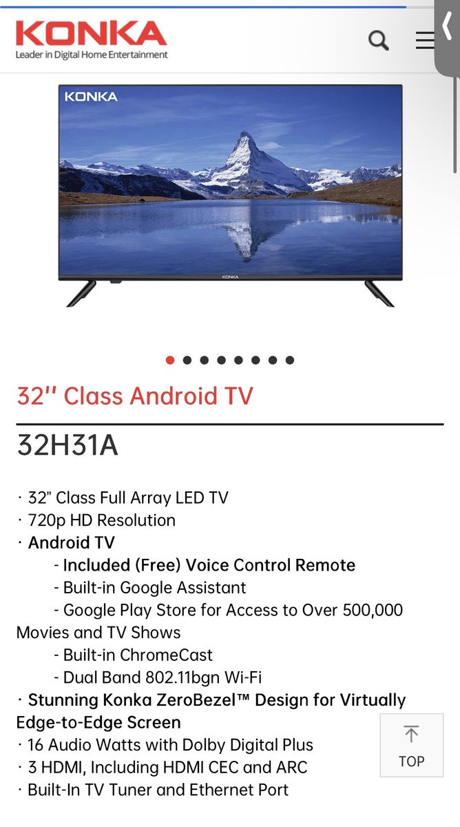 KONKA: Leader in Digital Home Entertainment 32 Class Android TV 32H31A • 32 Class Full Array LED TV • 720p HD Resolution • Android TV\